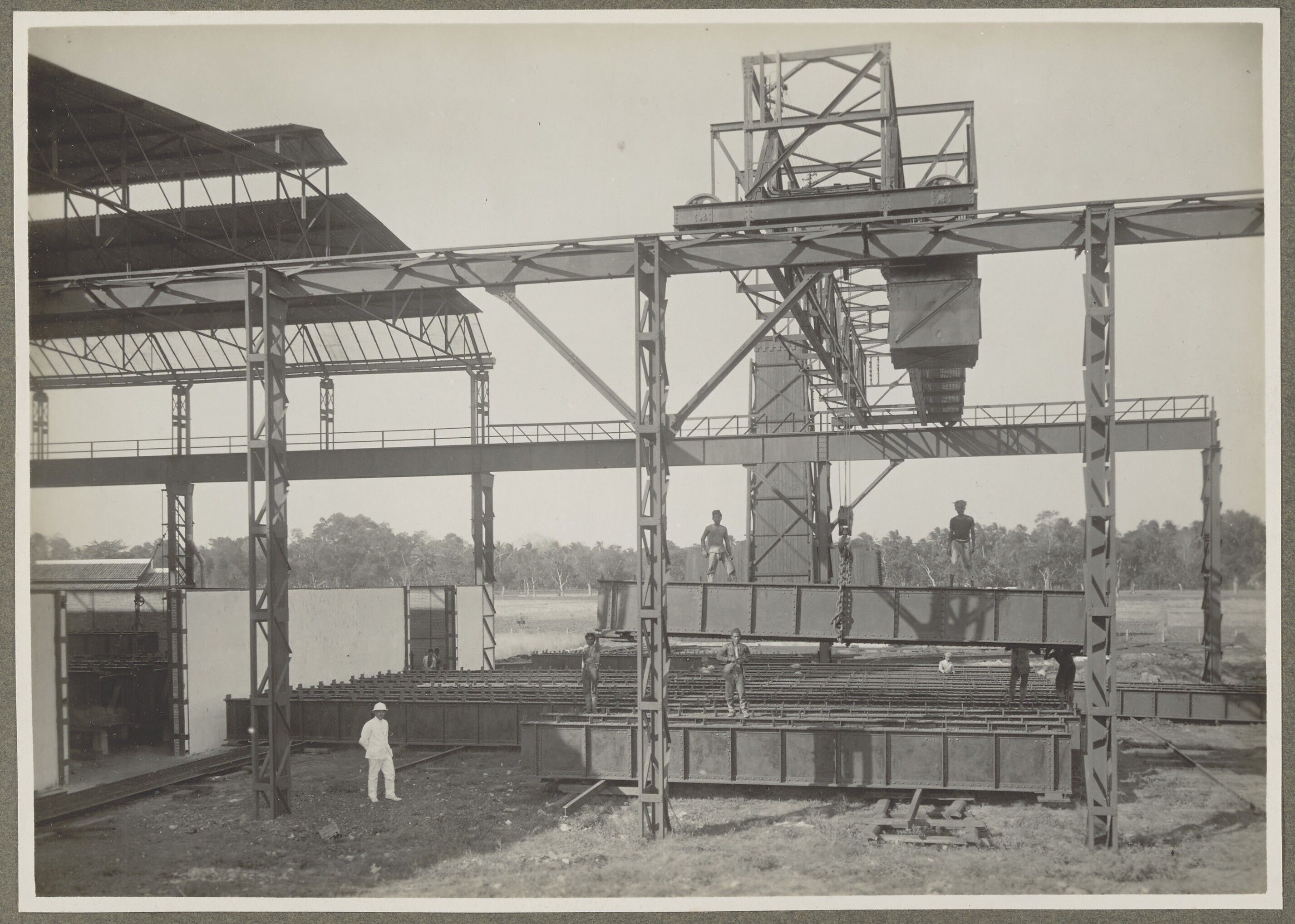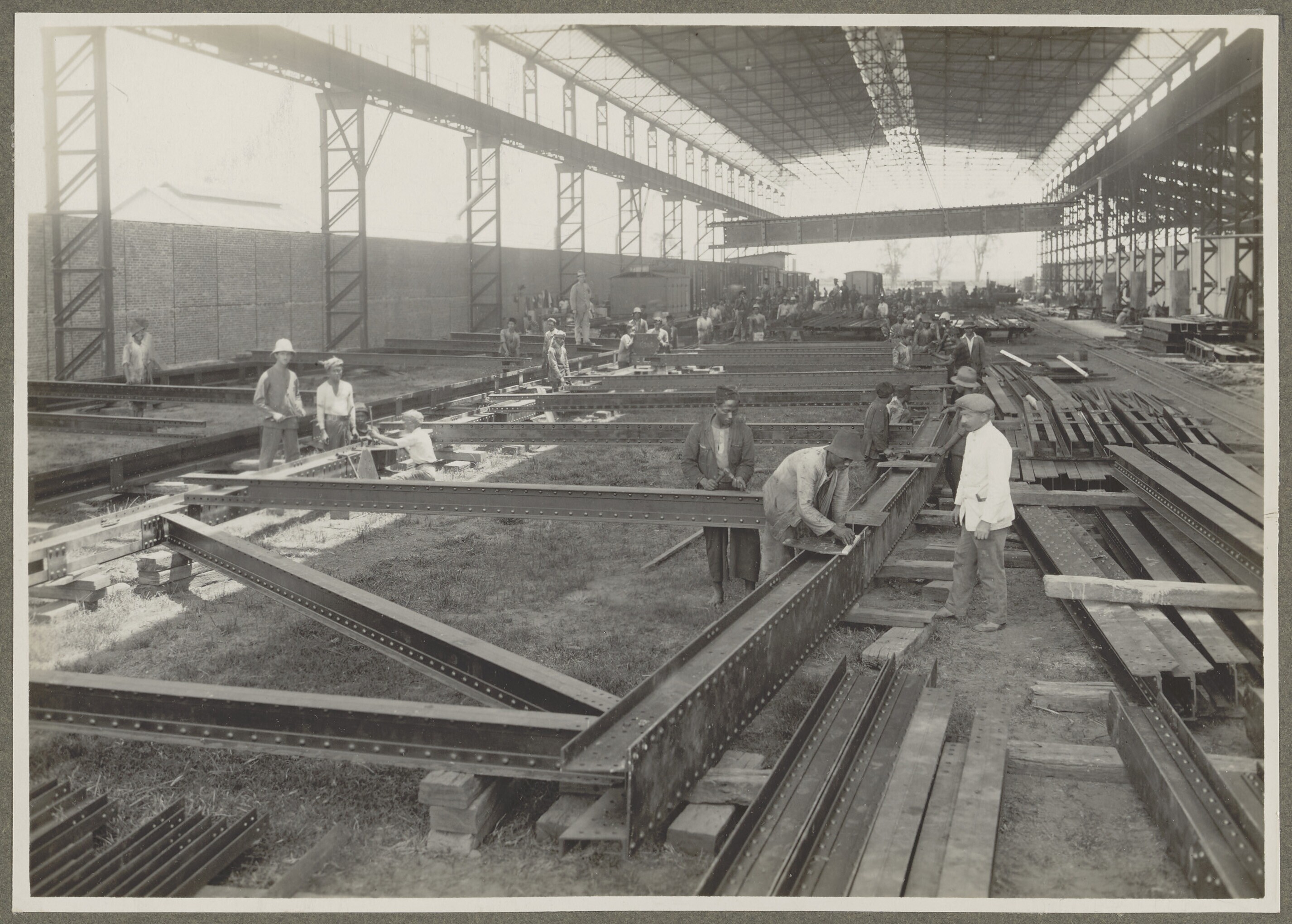 Arbeiders aan het werk in een metaalconstructie bedr...