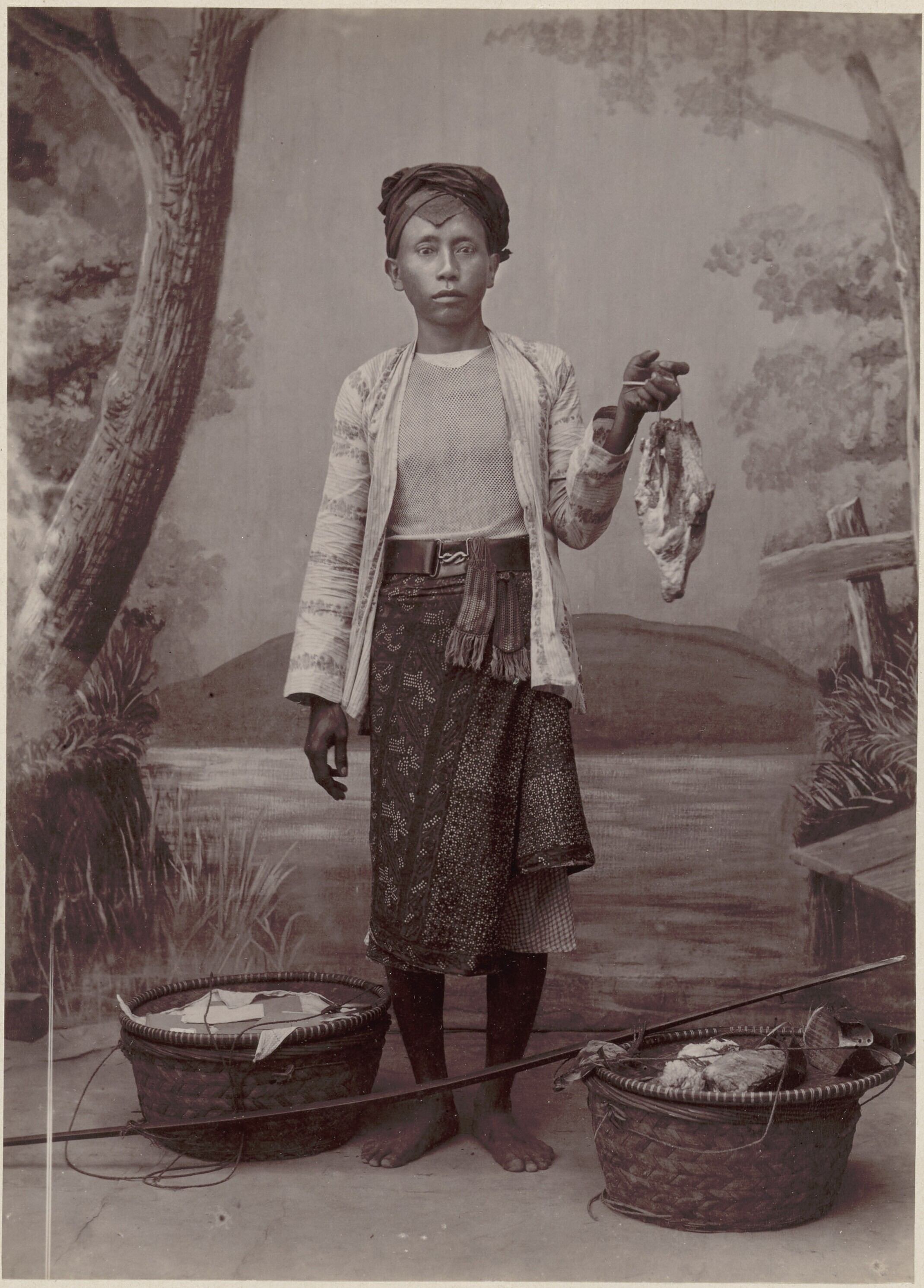 Portret van een vruchtenverkoper te Batavia