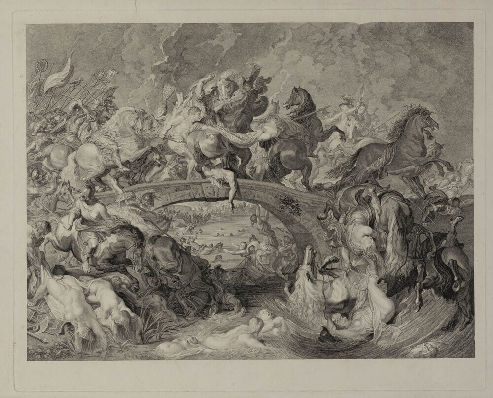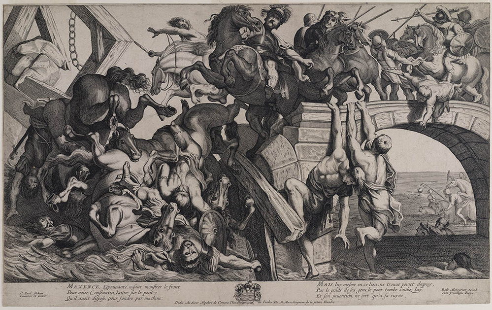 Maxentius valt in de Tiber nadat hij door keizer Con...
