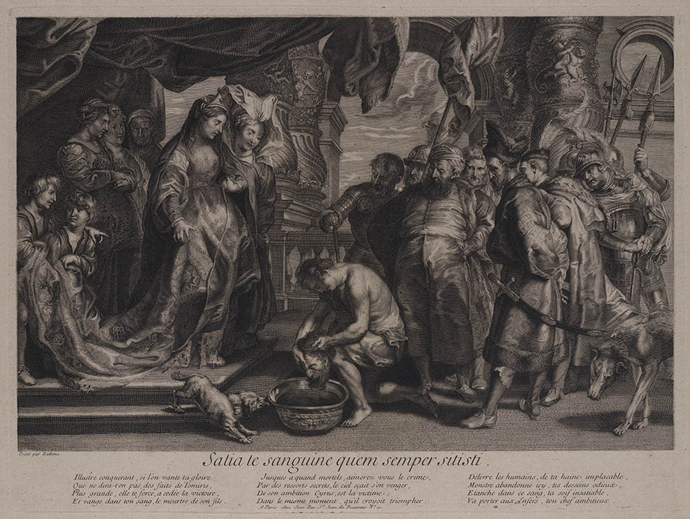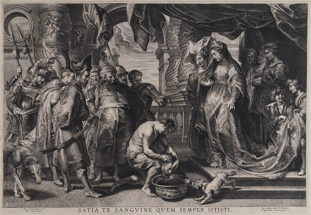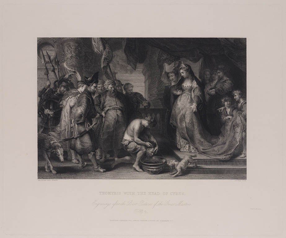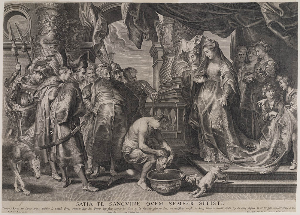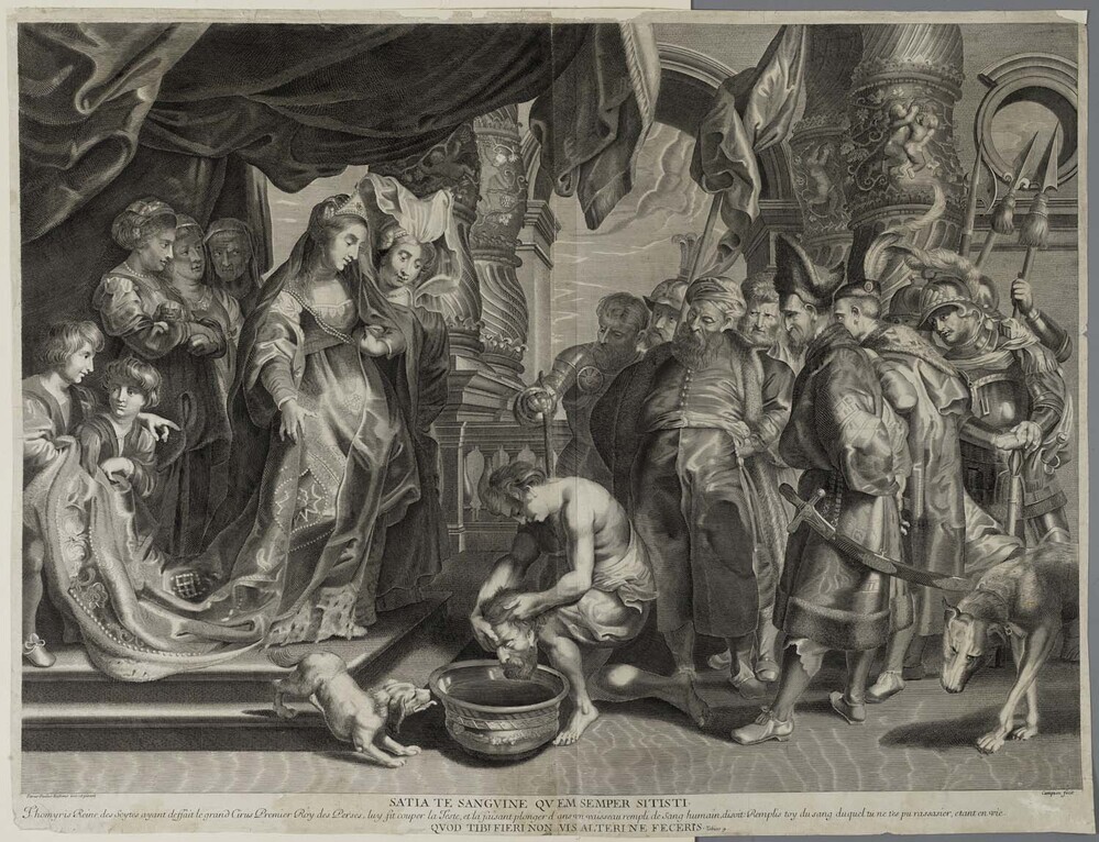 Thomiris laat het hoofd van Cyrus in een vat met blo...