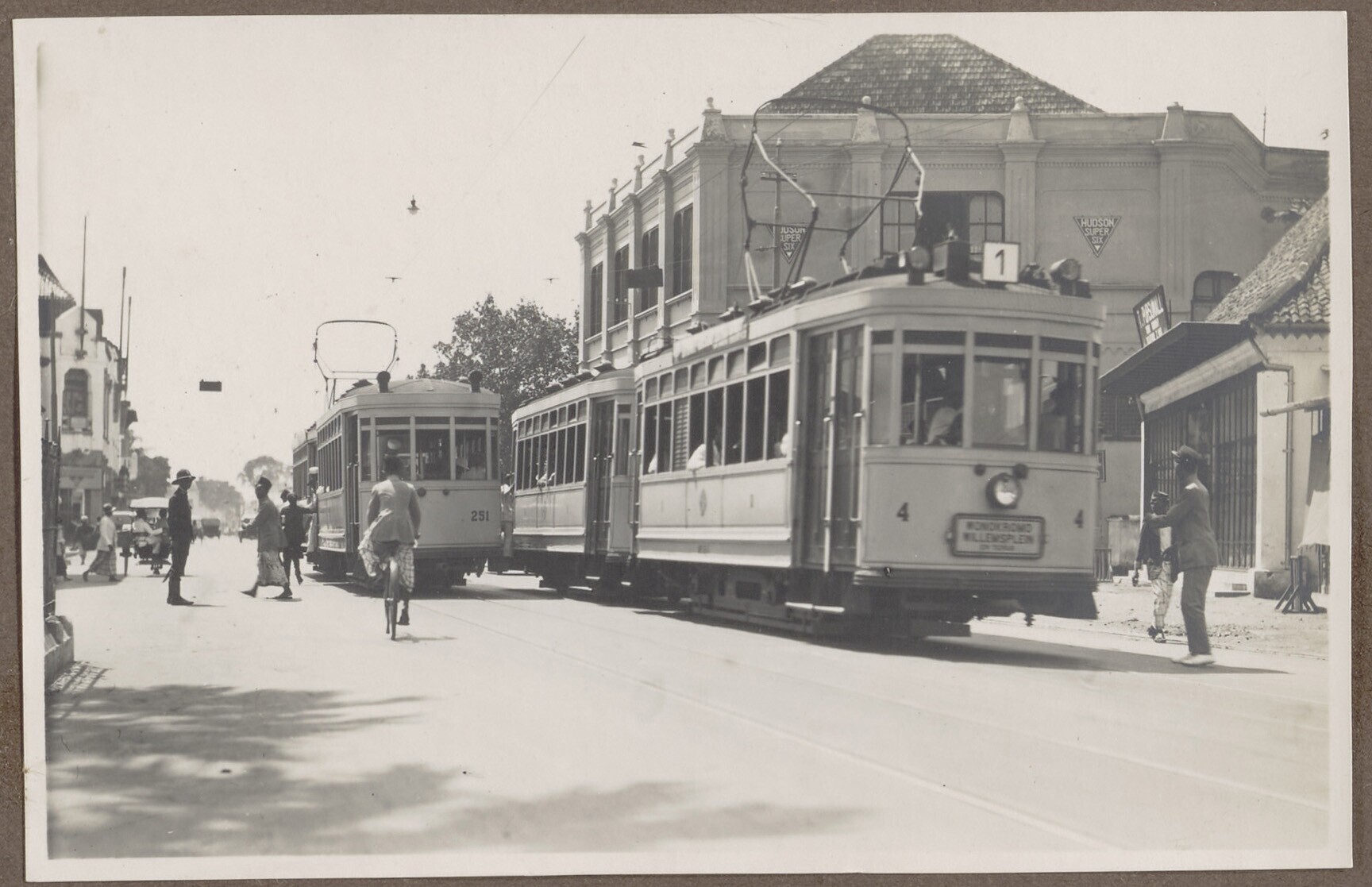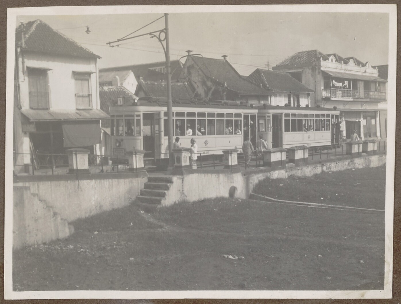 Een tram bij de halte op Kramat Gantoeng, Soerabaja