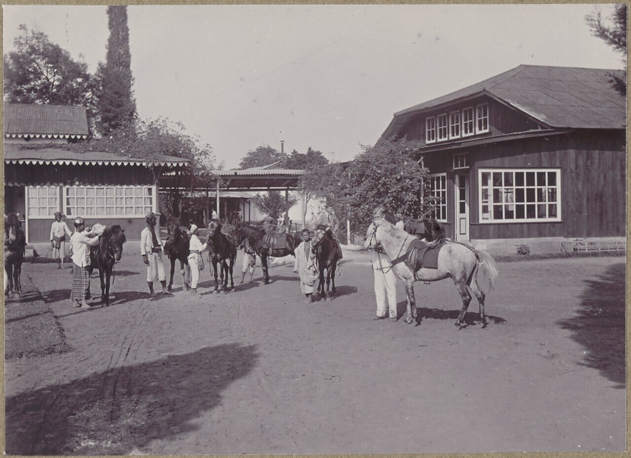 Paarden en personeel bij het Hotel te Nongkodjadjar,...