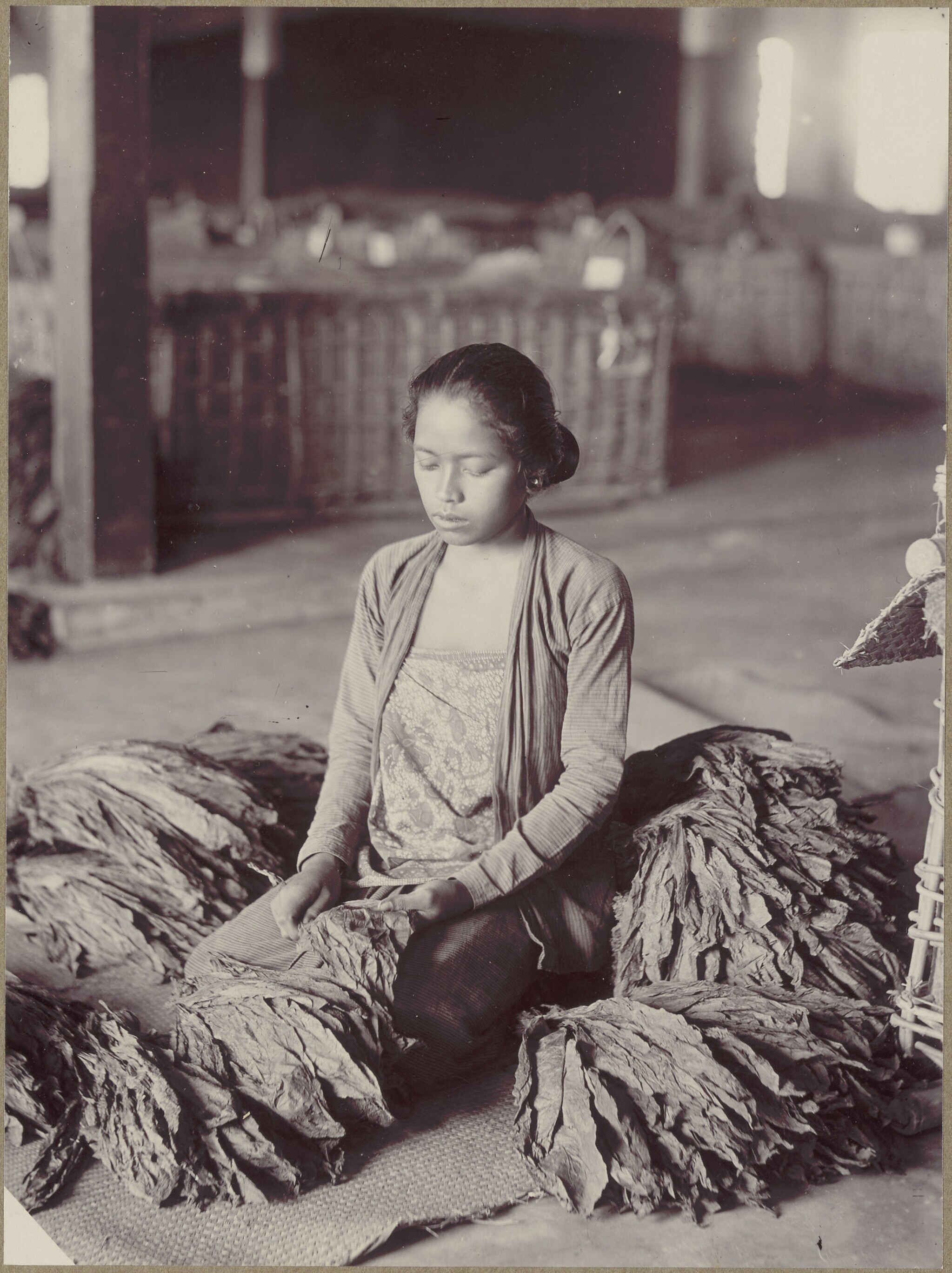 Arbeidster sorteert tabak op lengte en kleur, Java.