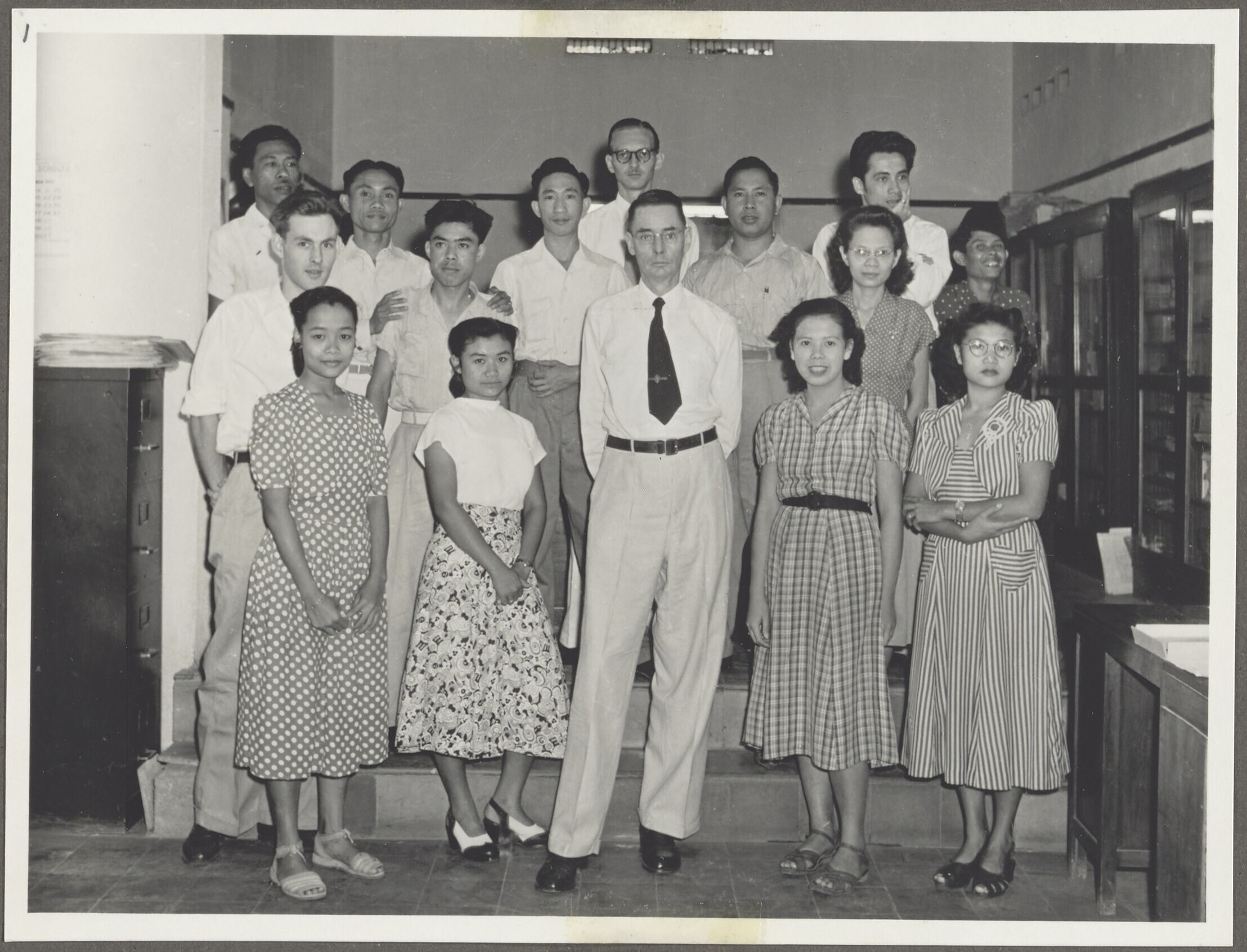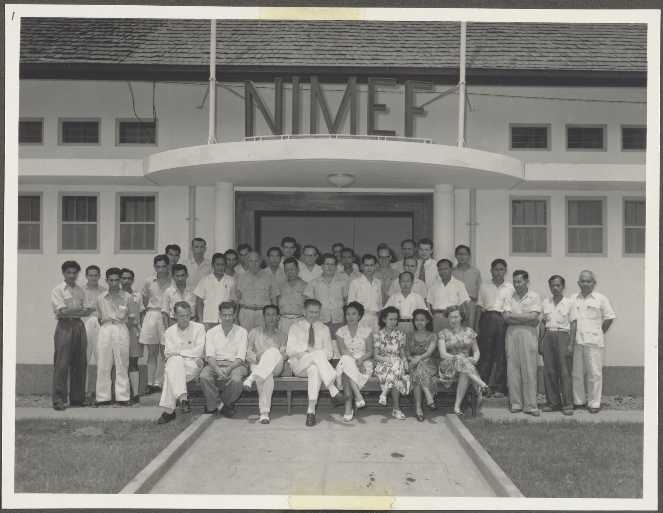 Groepsfoto van het kantoorpersoneel van de NIMEF- fa...
