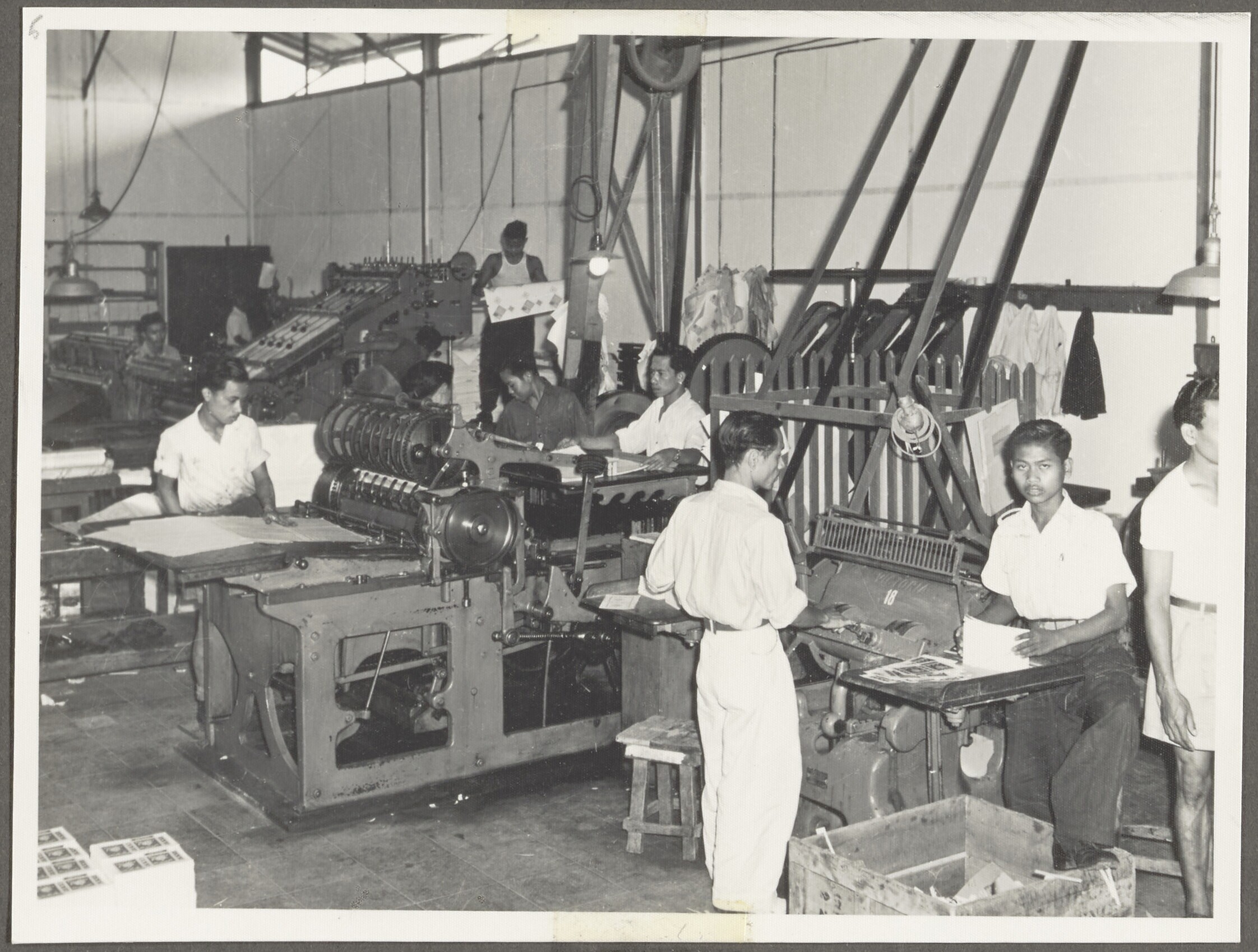 Interieur van de boekdrukafdeling van de NIMEF fabri...