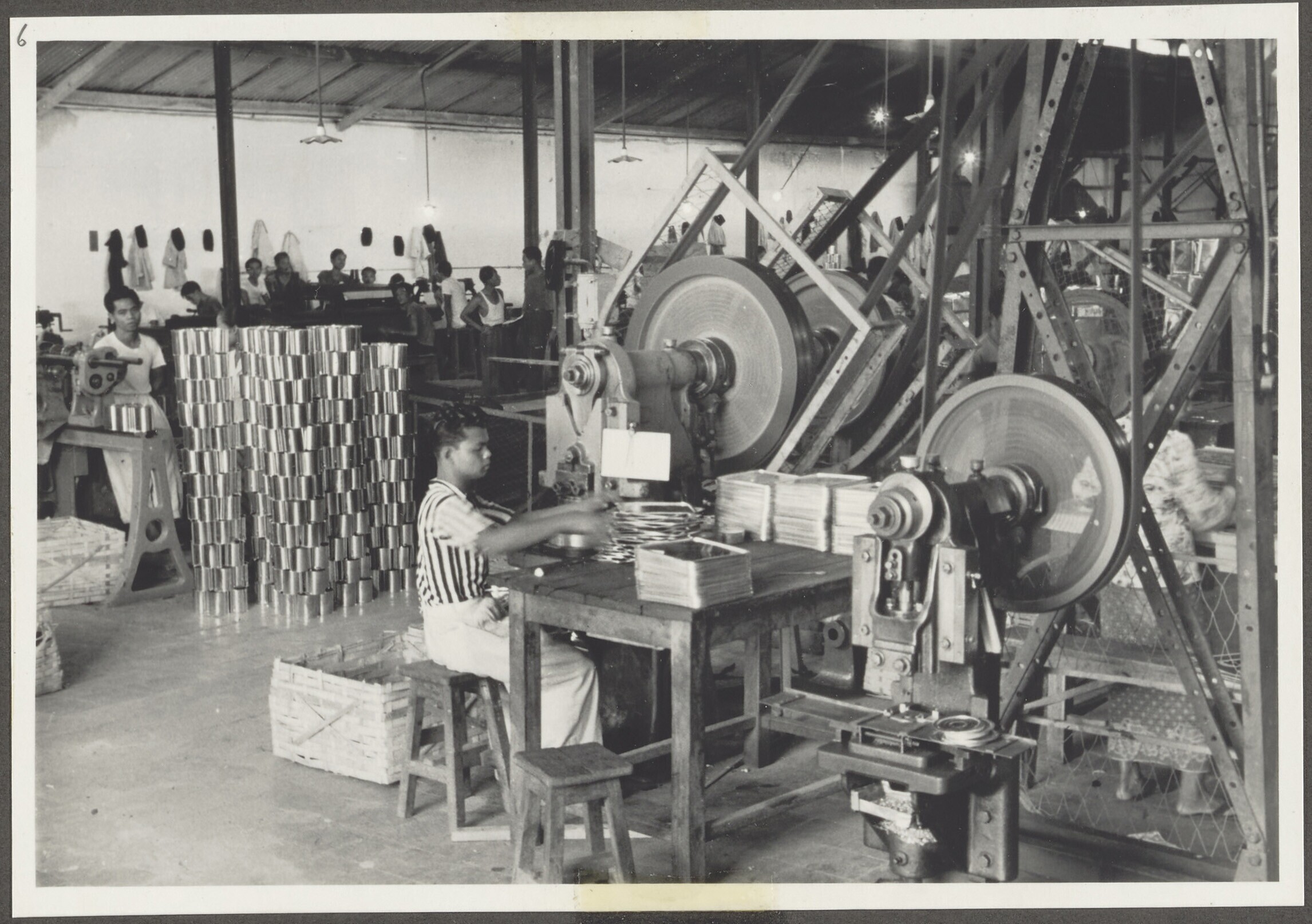 De Mann-blikdrukpers van de NIMEF-fabriek in Djakarta.