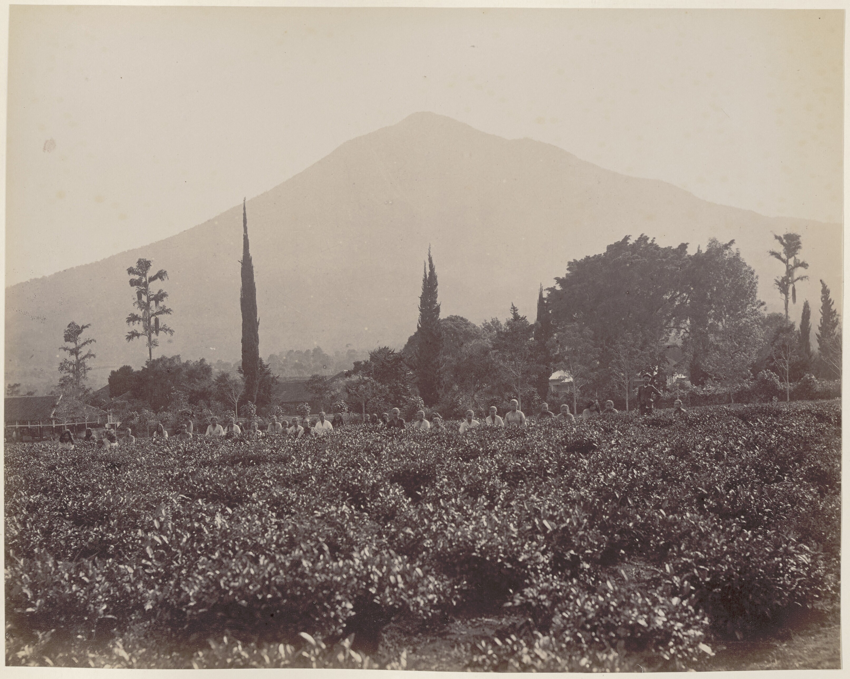 Man bezig in de tuin, op de theeplantage Tjigoleg, J...