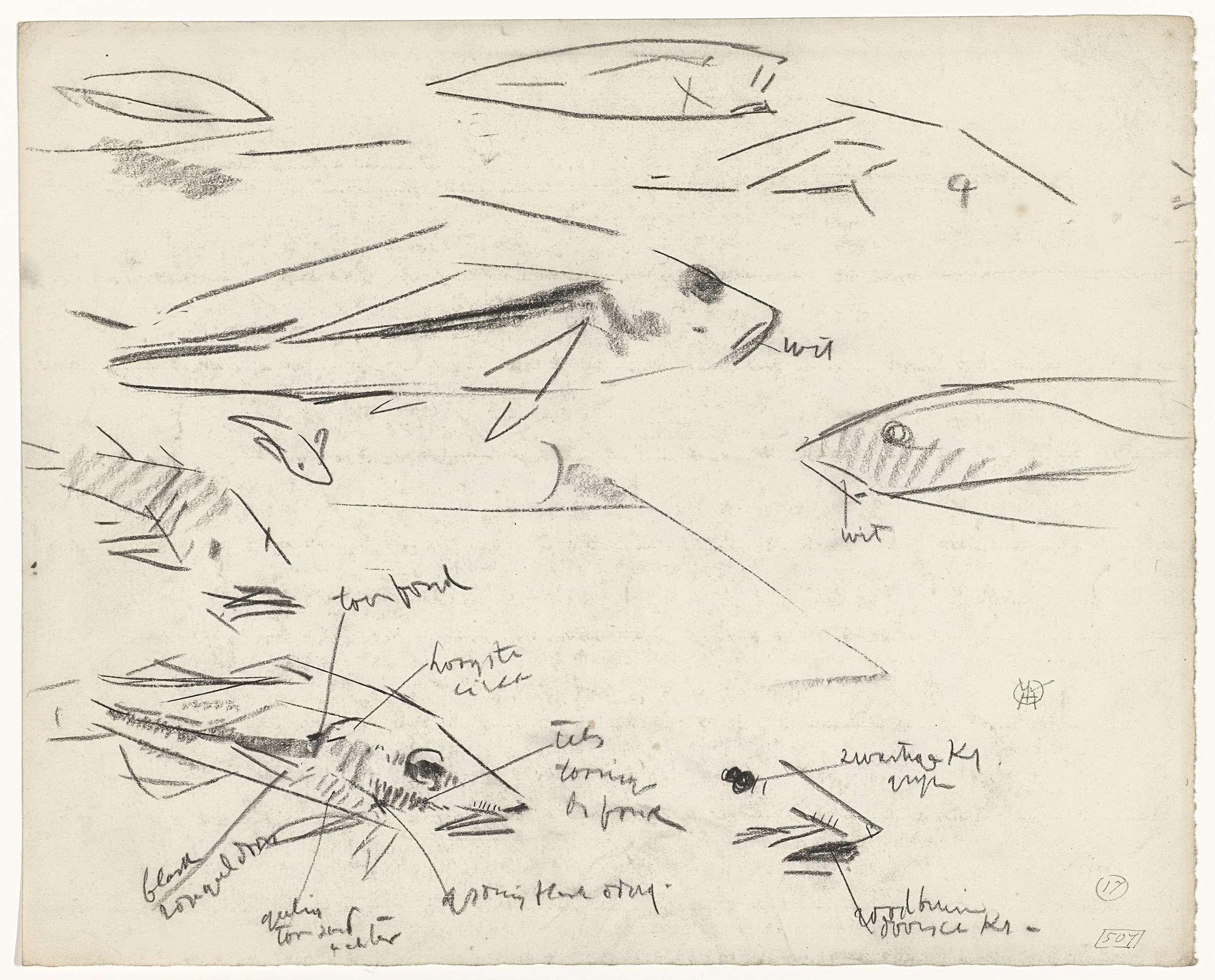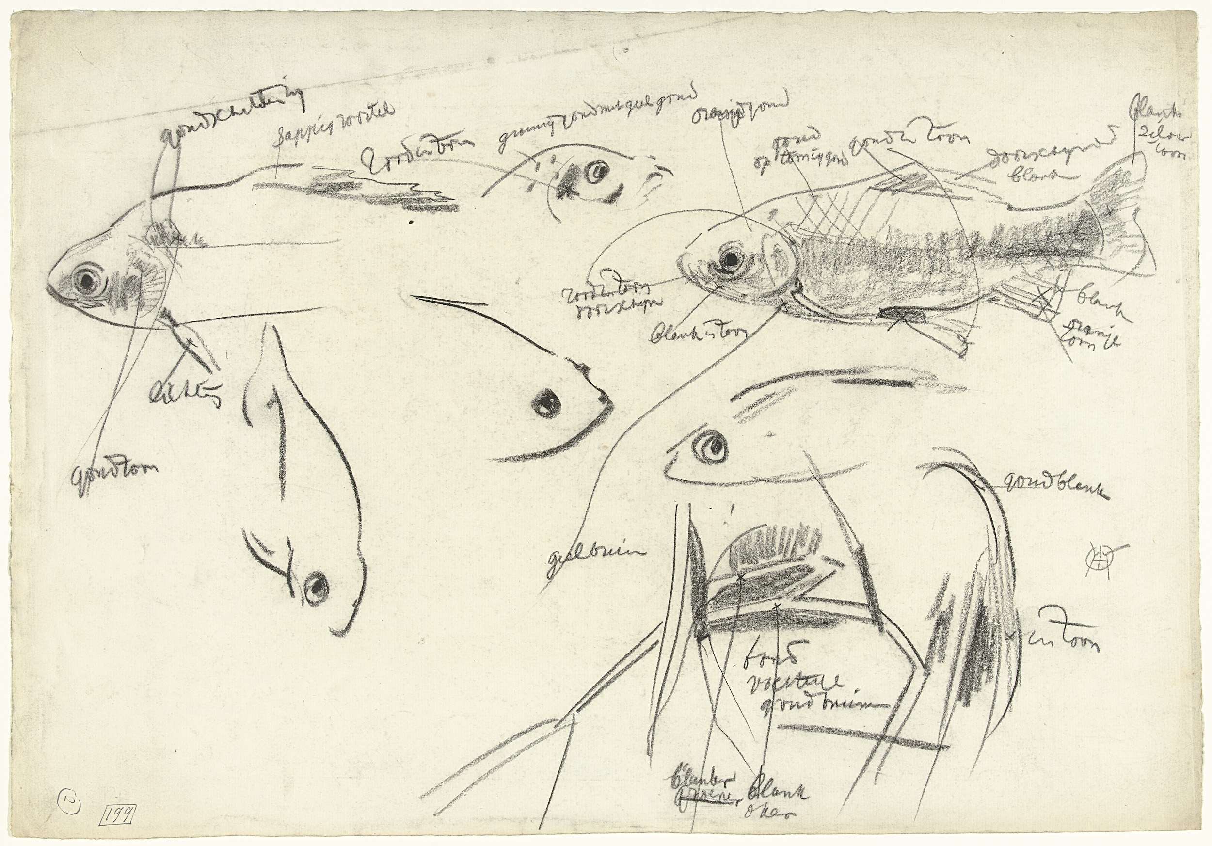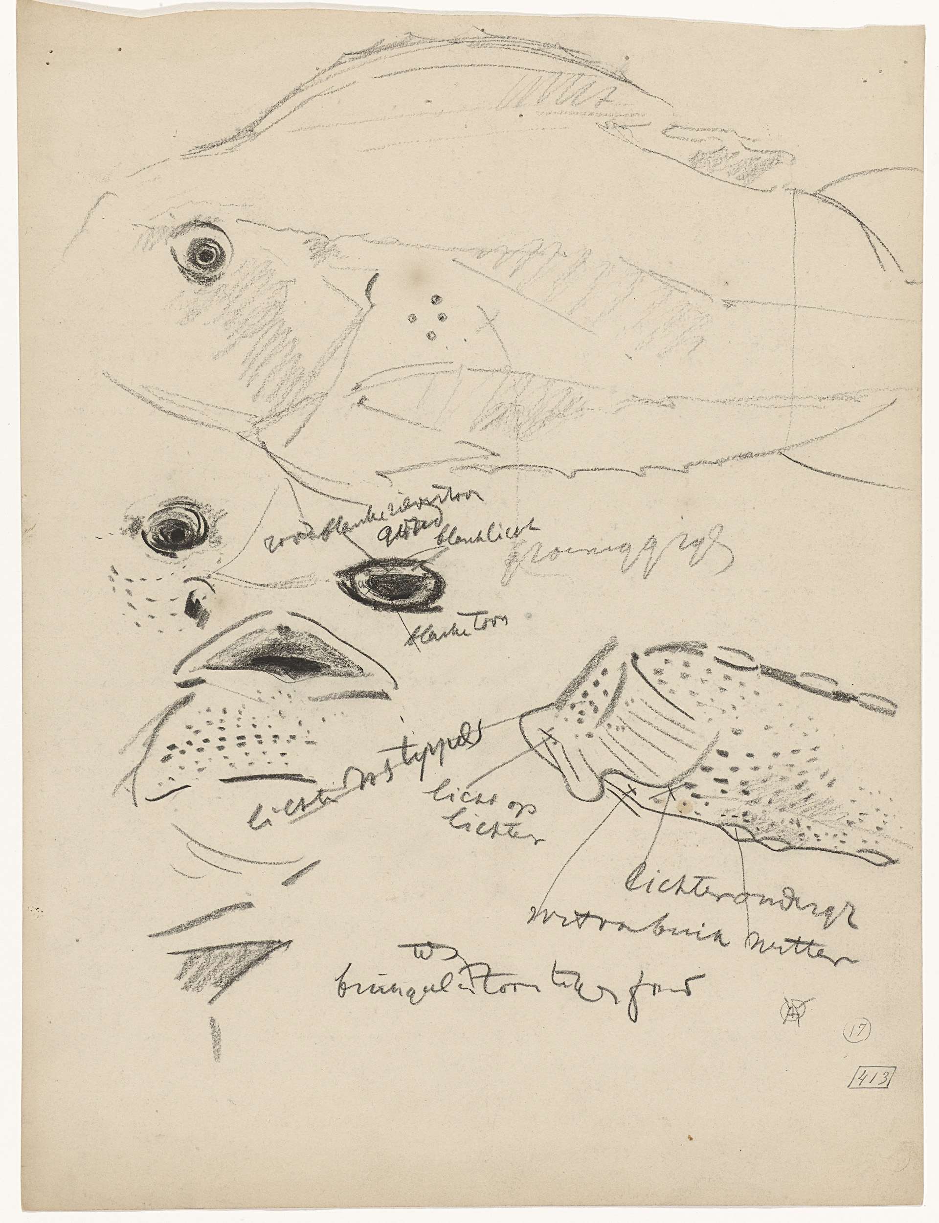 Studies van een vis, met kleurnotities