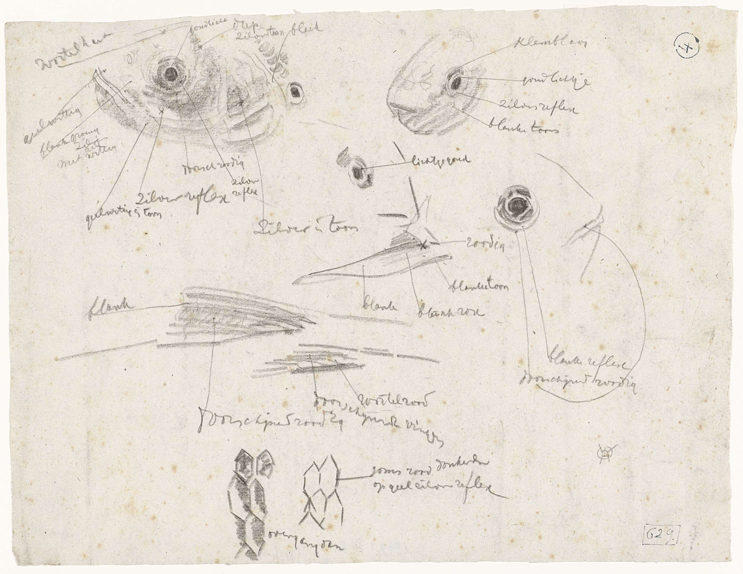 Detailstudies van vissen, met kleurnotities