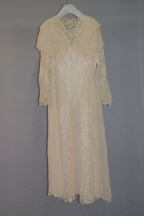 Witte trouwjapon, lange mouwen, voetlang, met onderjurk