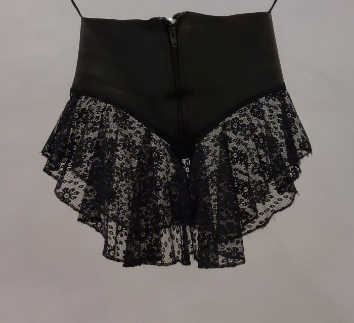 Zwarte broek "Modzart" met vetersluiting langs zijka...