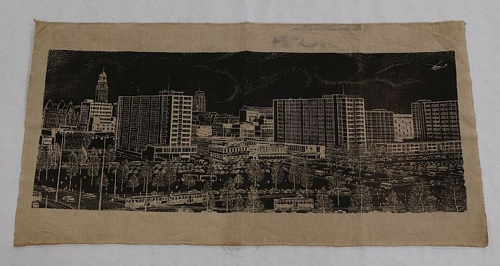 Doek met zwarte afbeelding van skyline Rotterdam, ze...