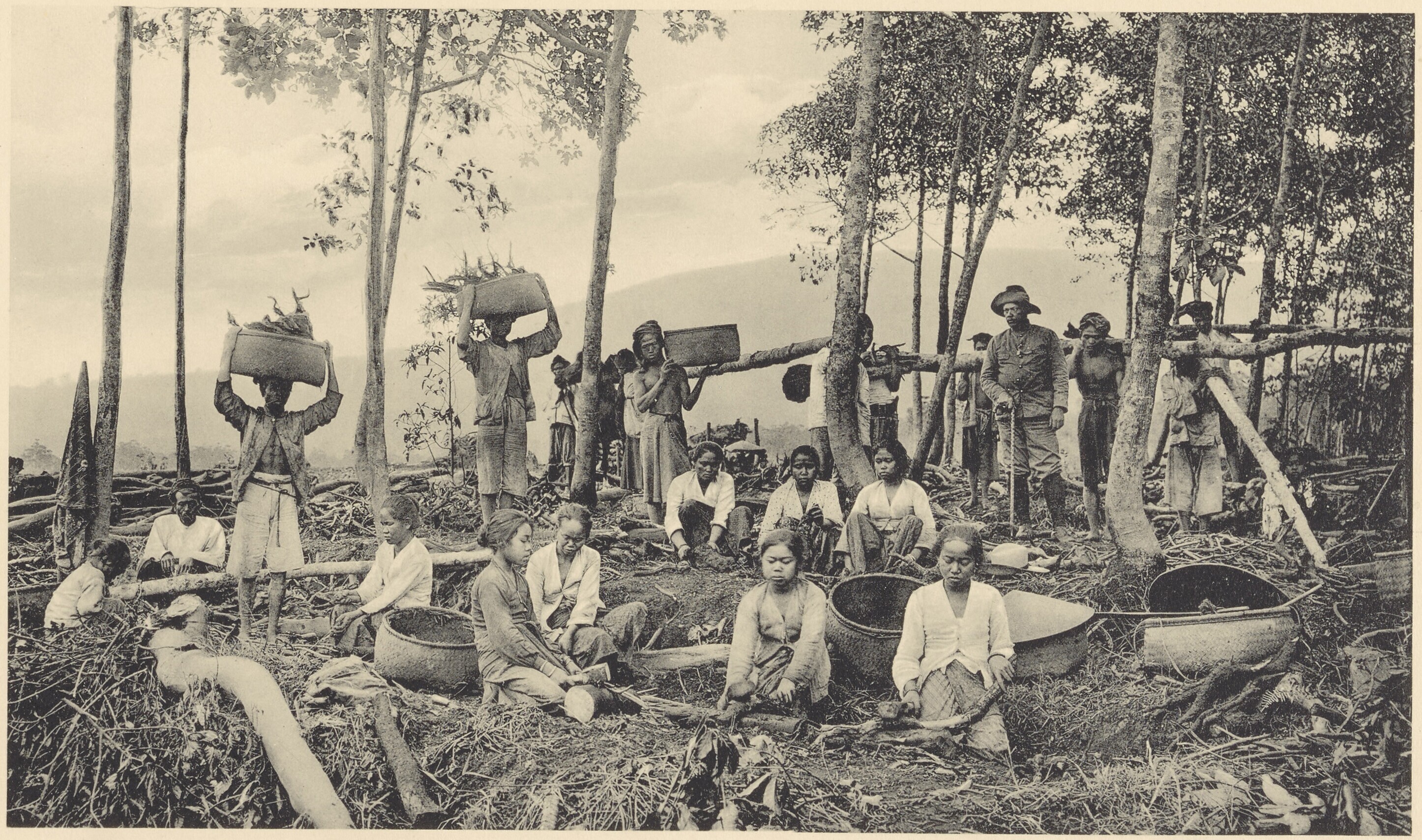 Het oogsten van kina op de plantage Djajagiri