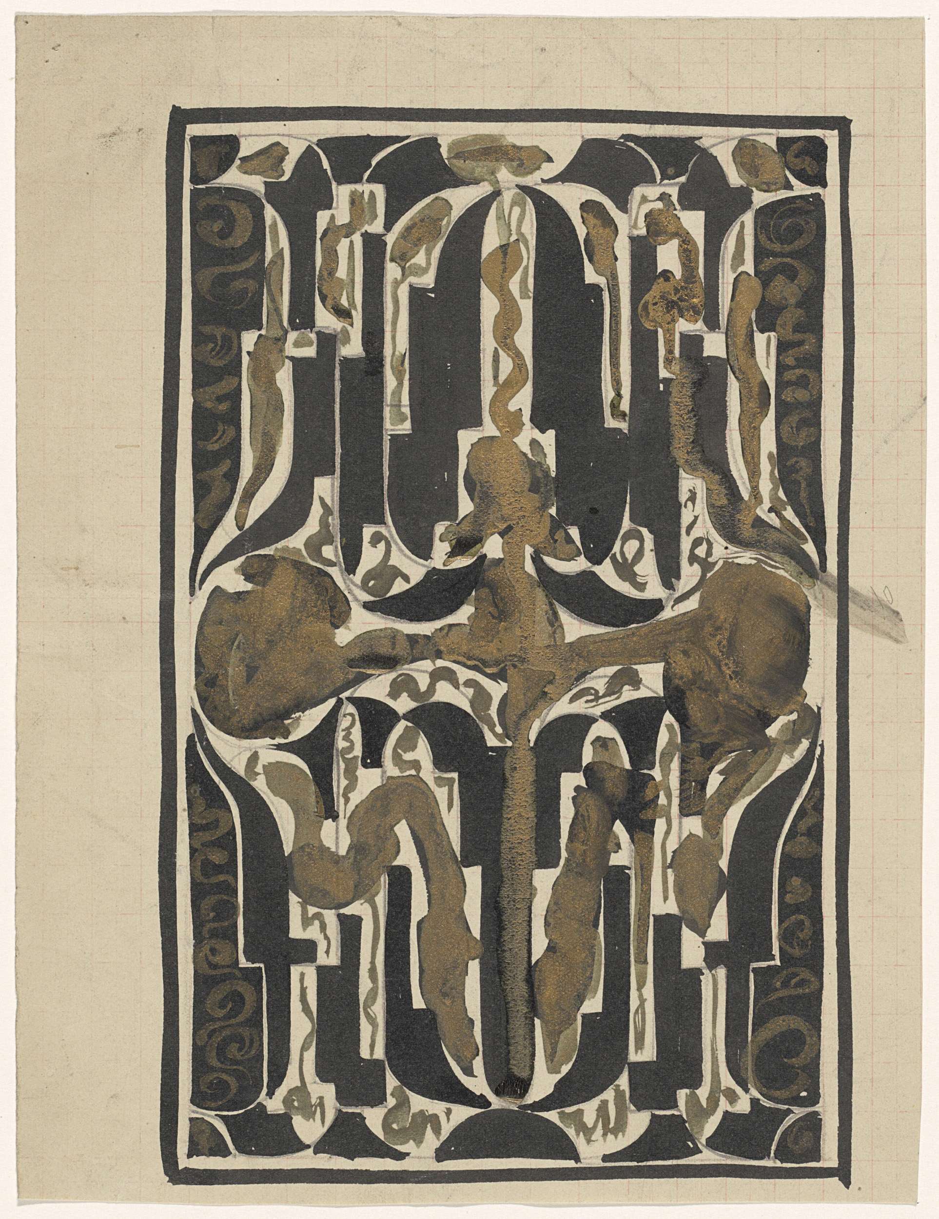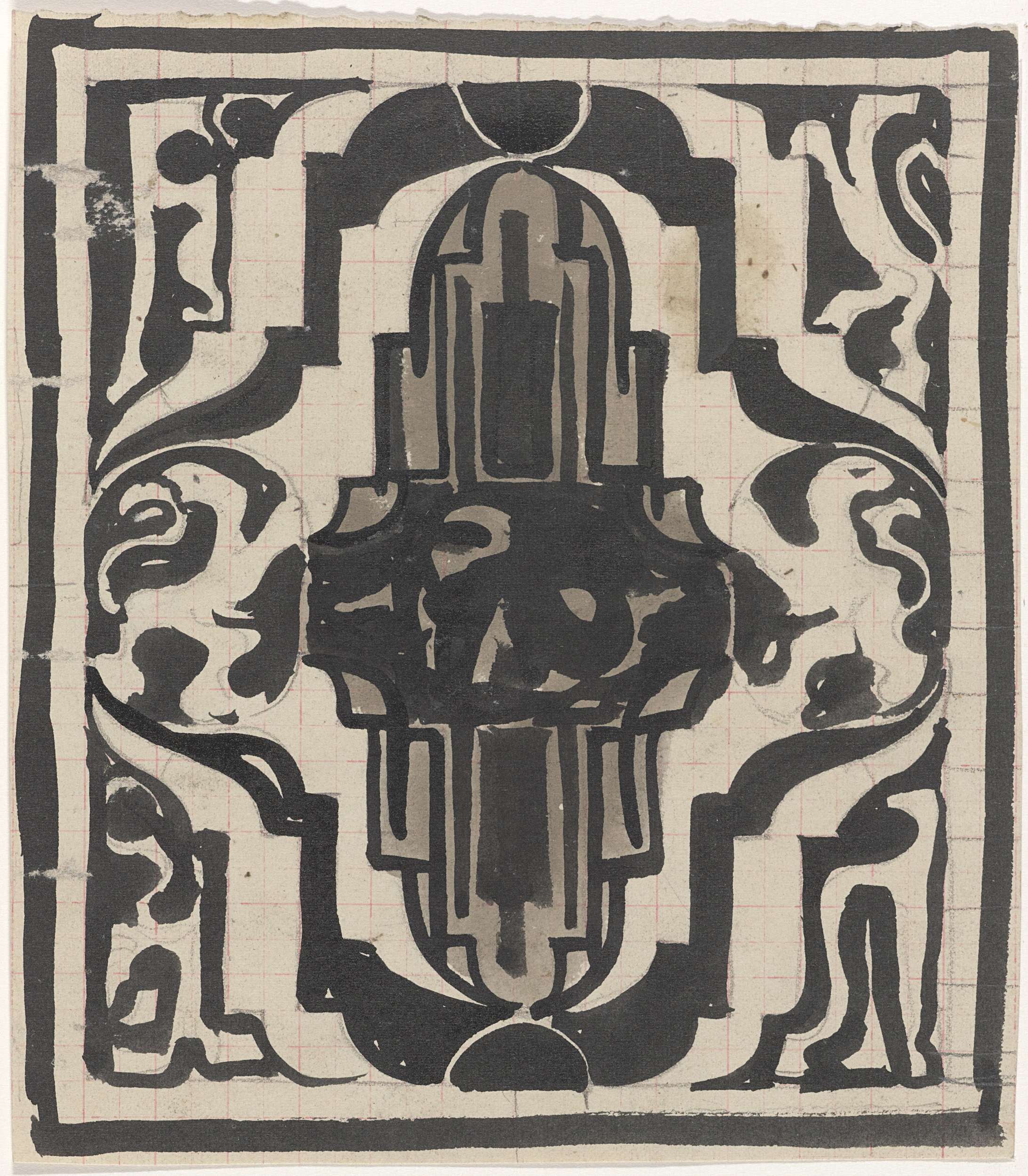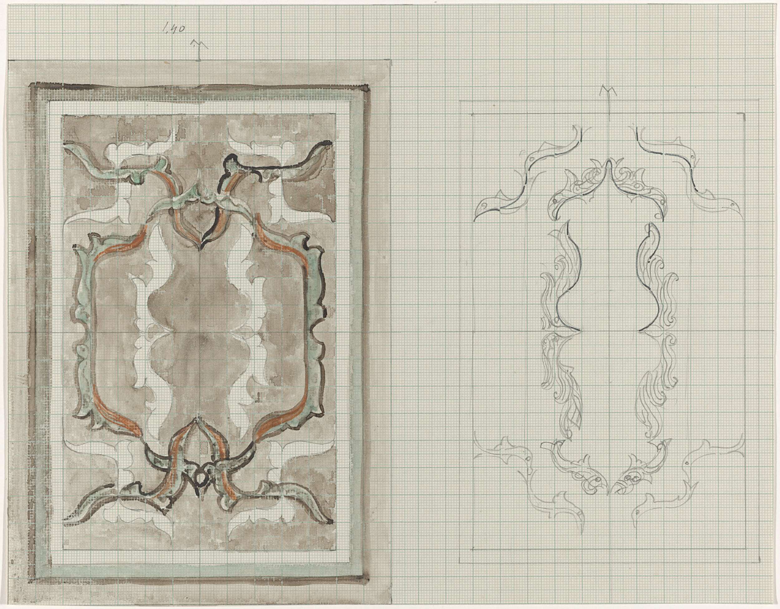 Ontwerp voor een decoratief paneel, met gestileerde ...