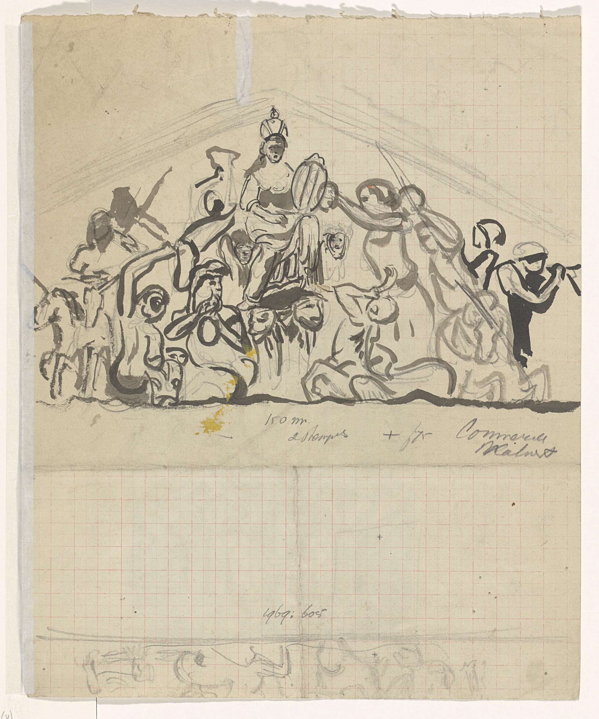 Schets van het front timpaan van het Koninklijk Pale...