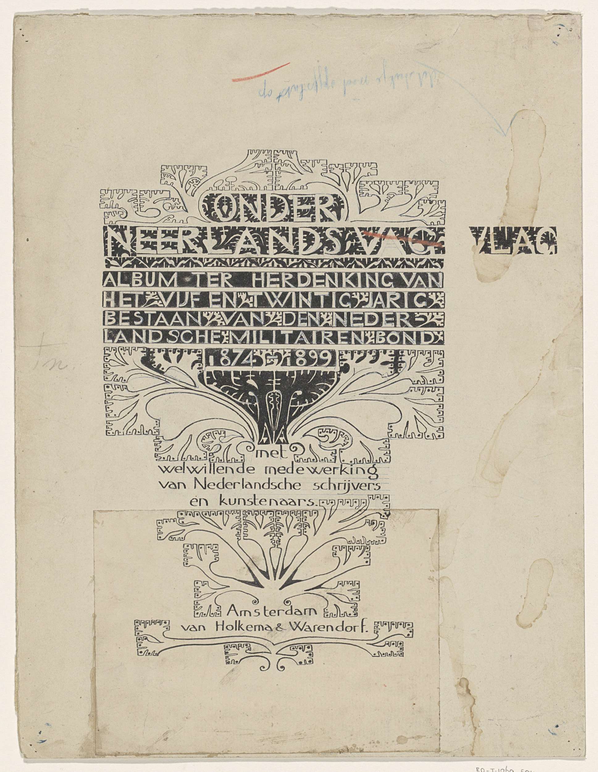 Ontwerp voor boekband van Onder Neerlands Vlag