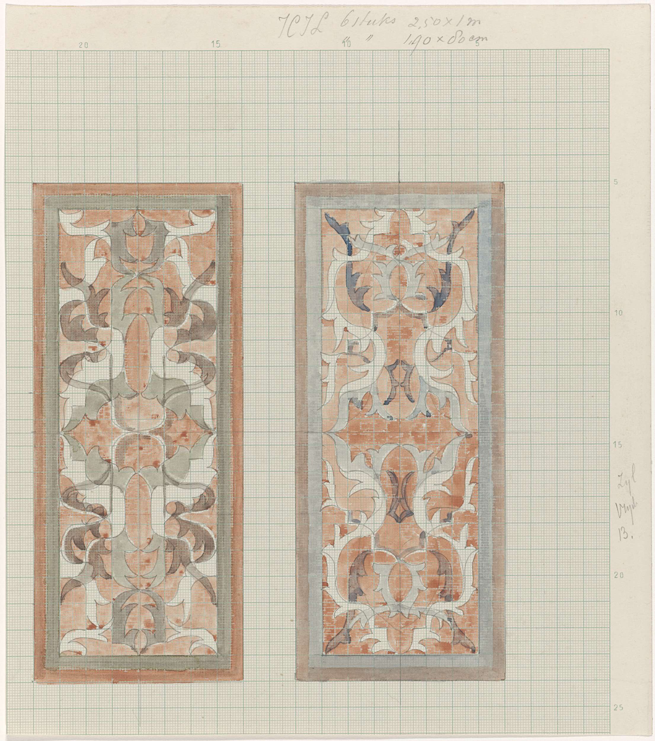 Ontwerptekening voor linker zijkant van tegeltableau...