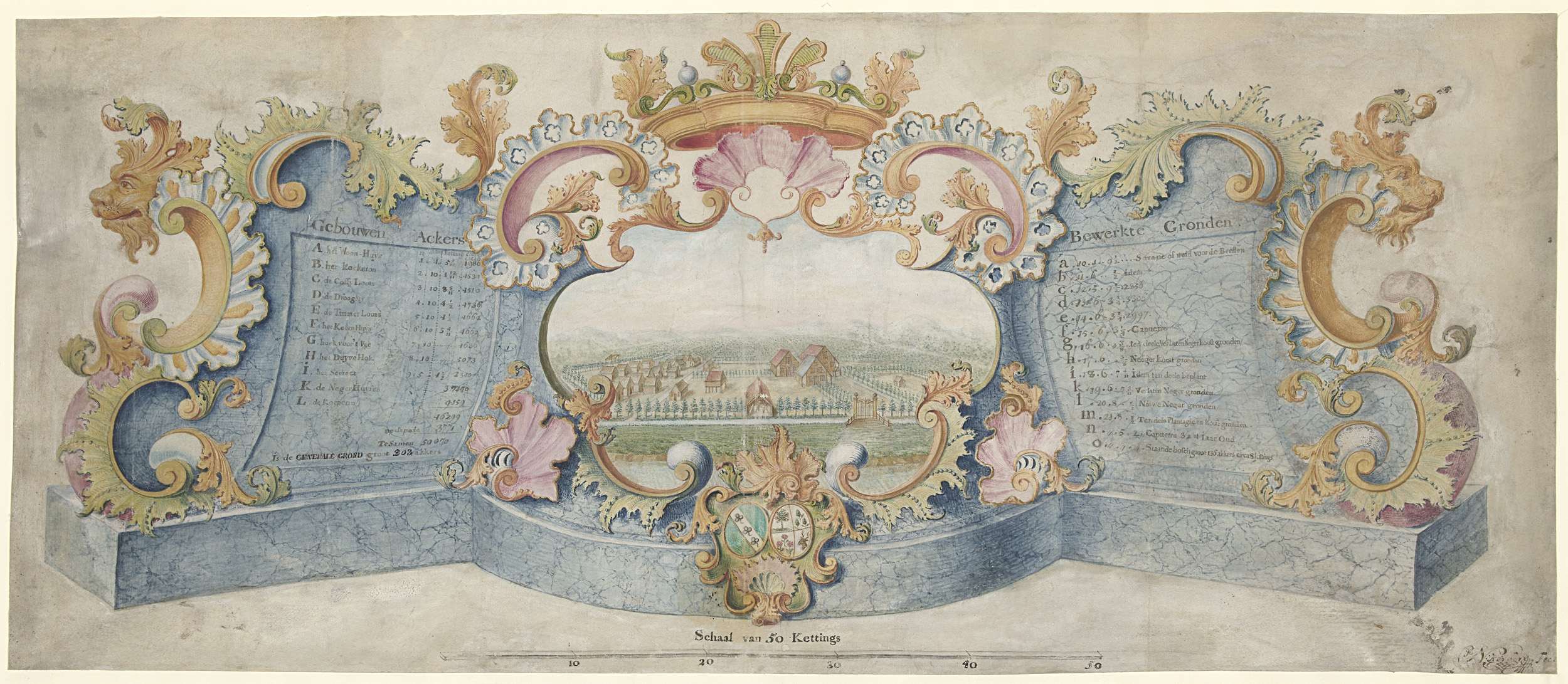 Decoratief ontwerp met vier wapenschilden