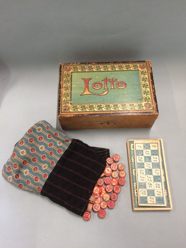 Lottospel in houten doos