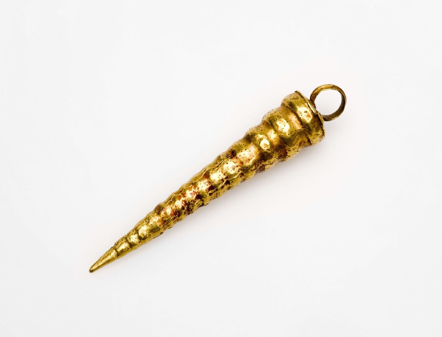 Twee holle, gouden peervormige Indo-Javaanse hangers...