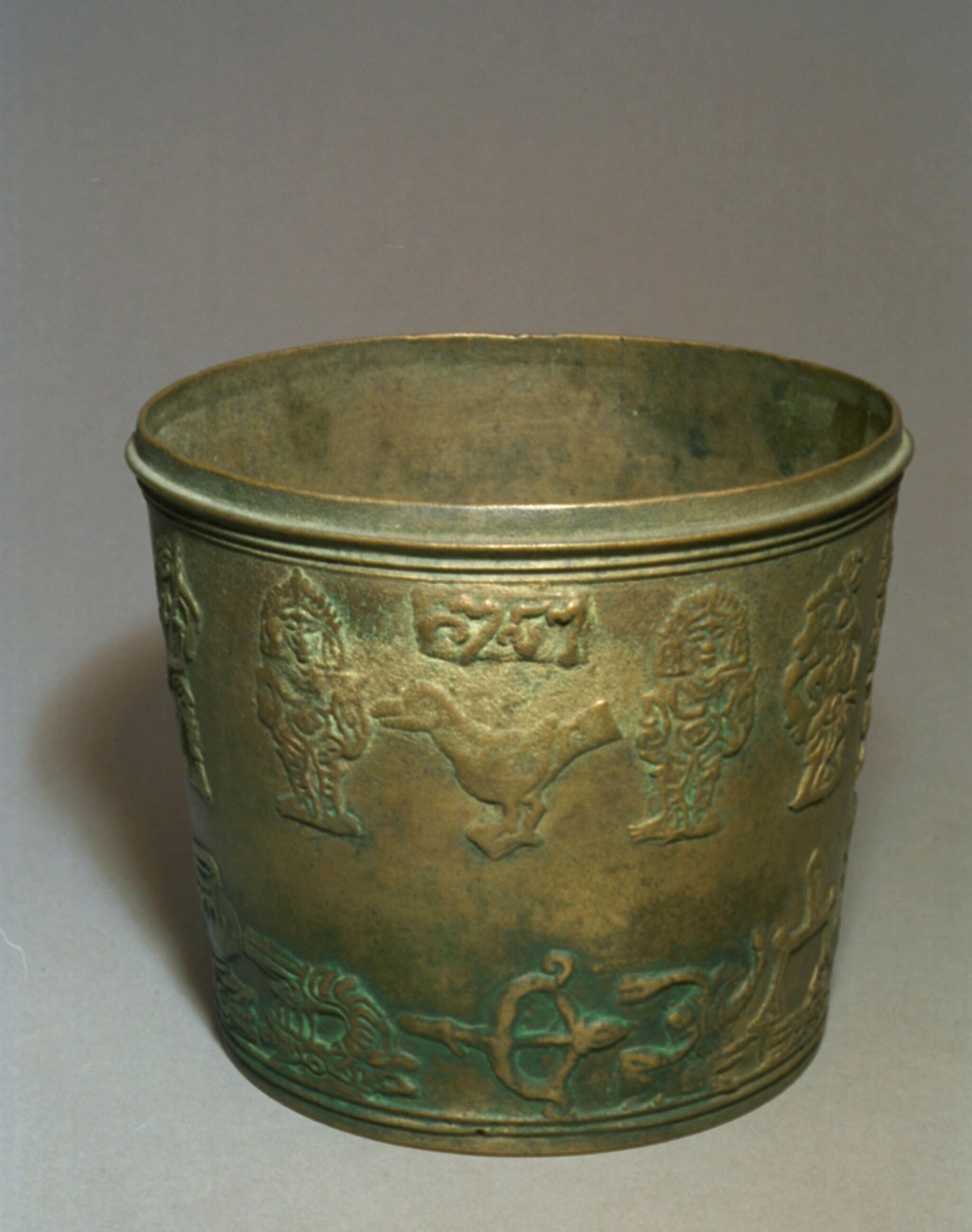 Indo-Javaanse bronzen zodiakbeker, versierd met teke...