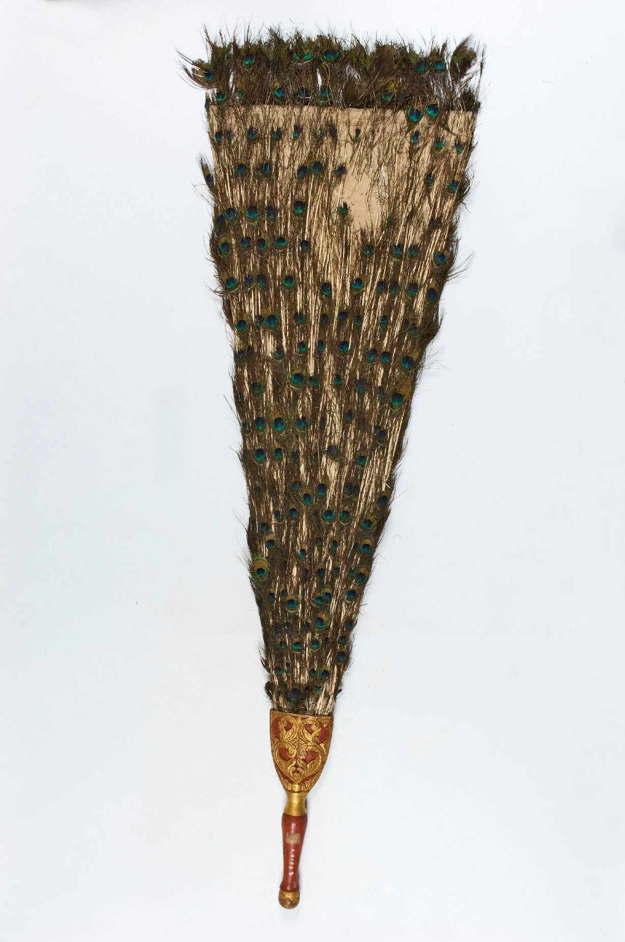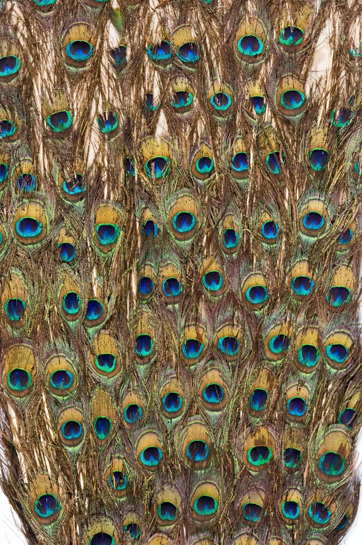 A fan of a peacock's tail