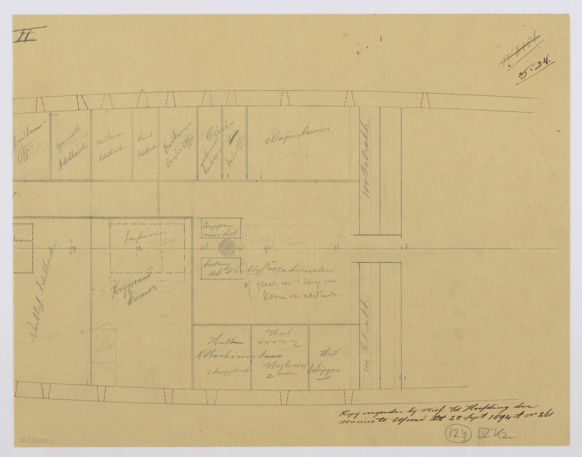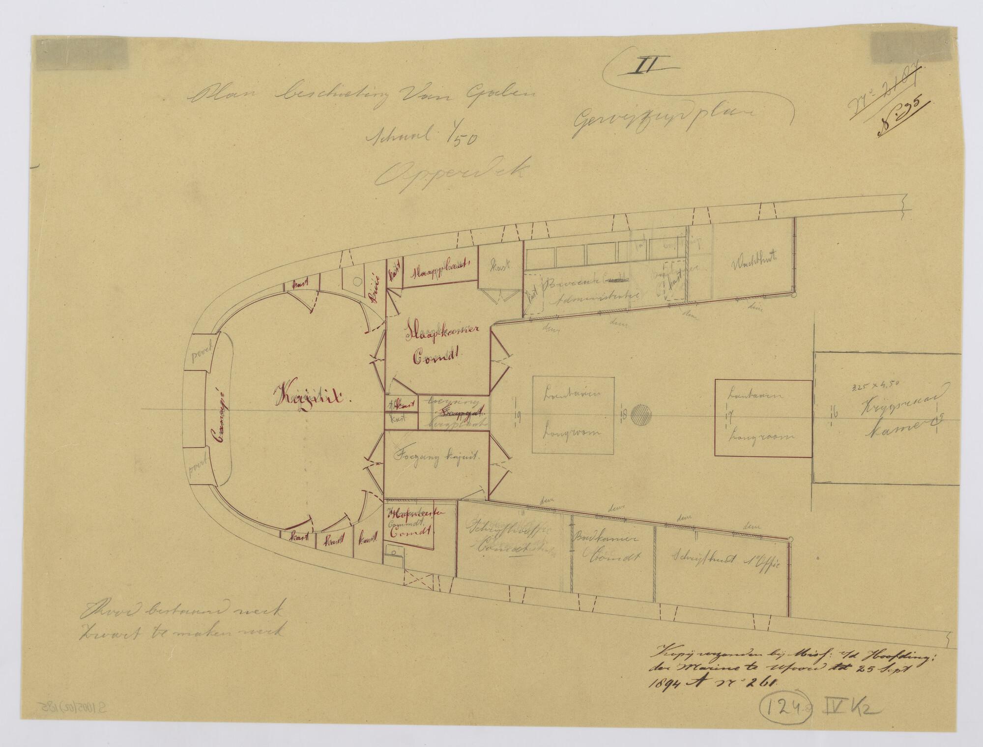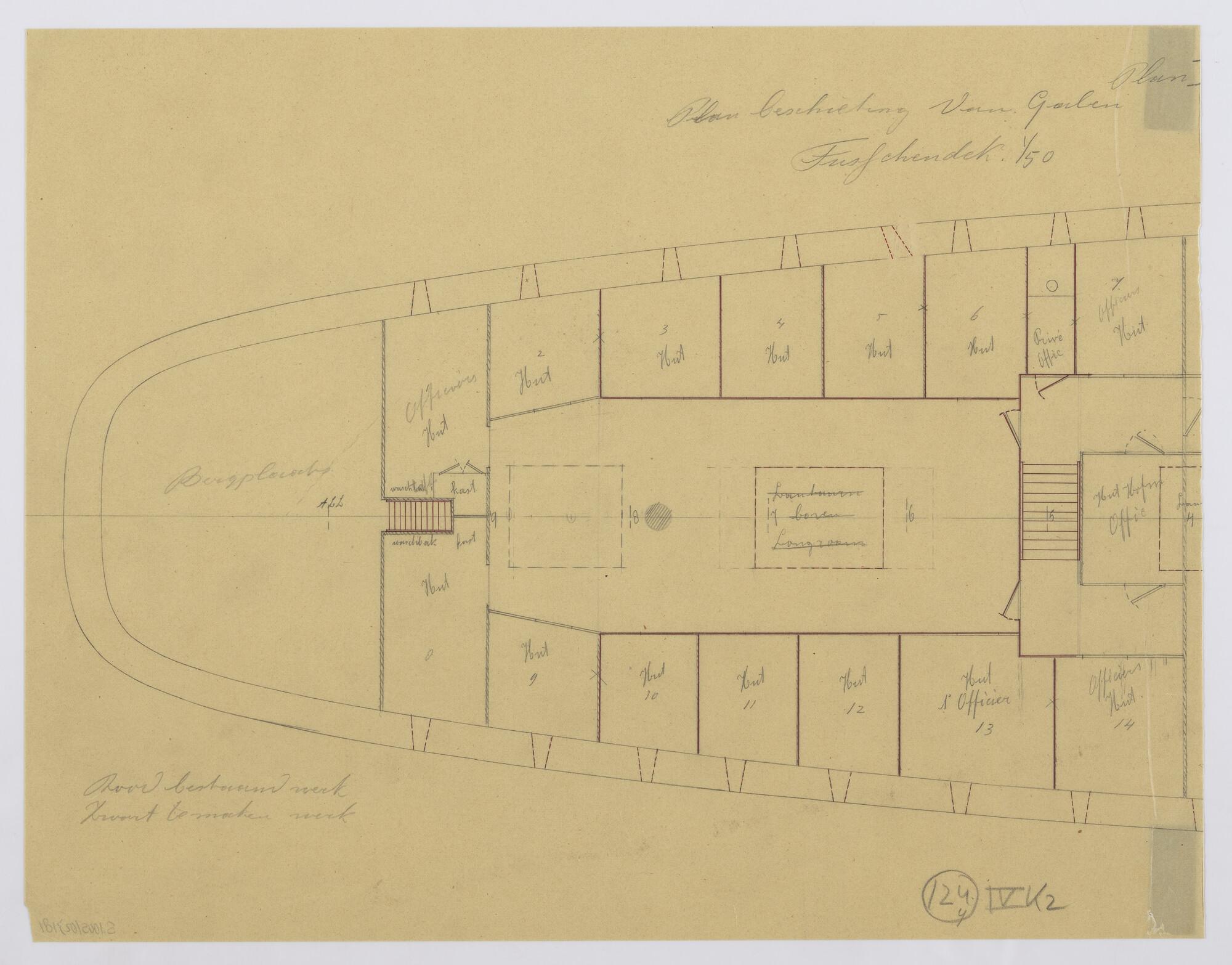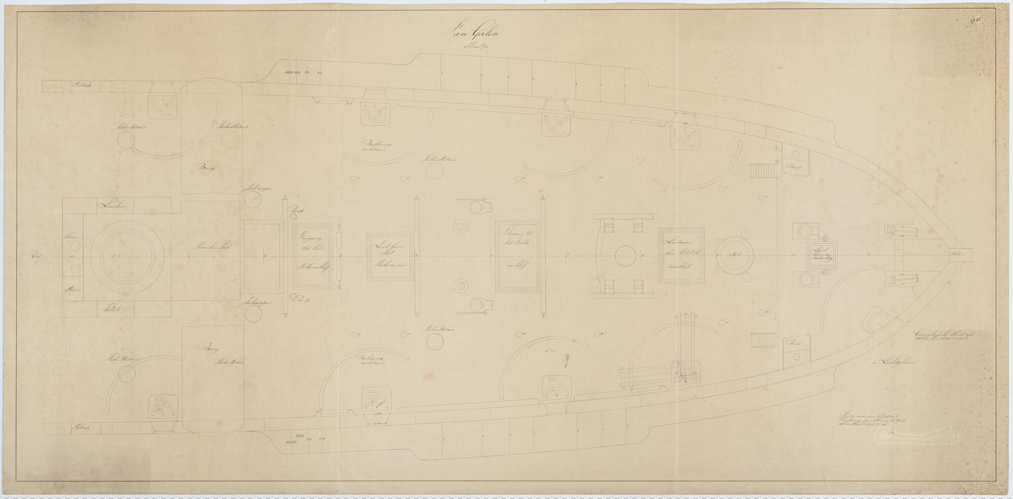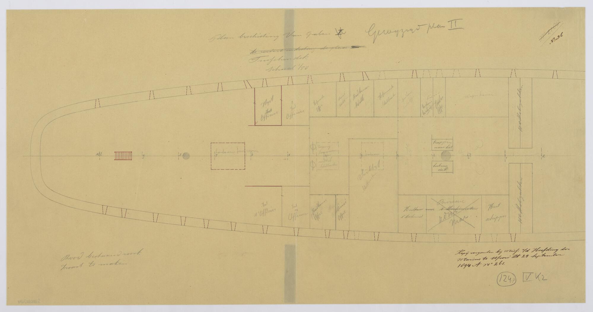 Langsdoorsnede, inwendige verdeling, grootspant van ...