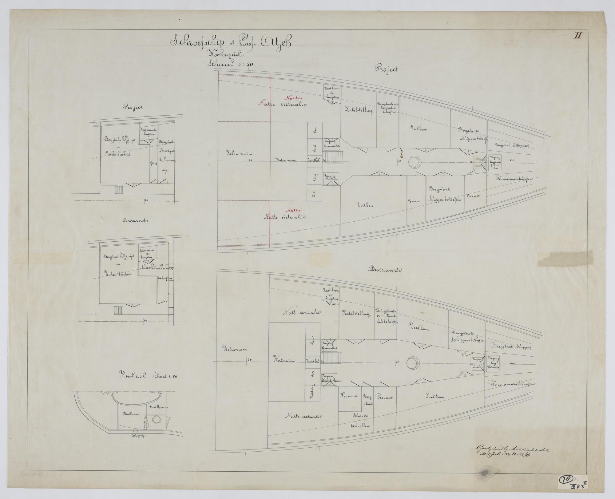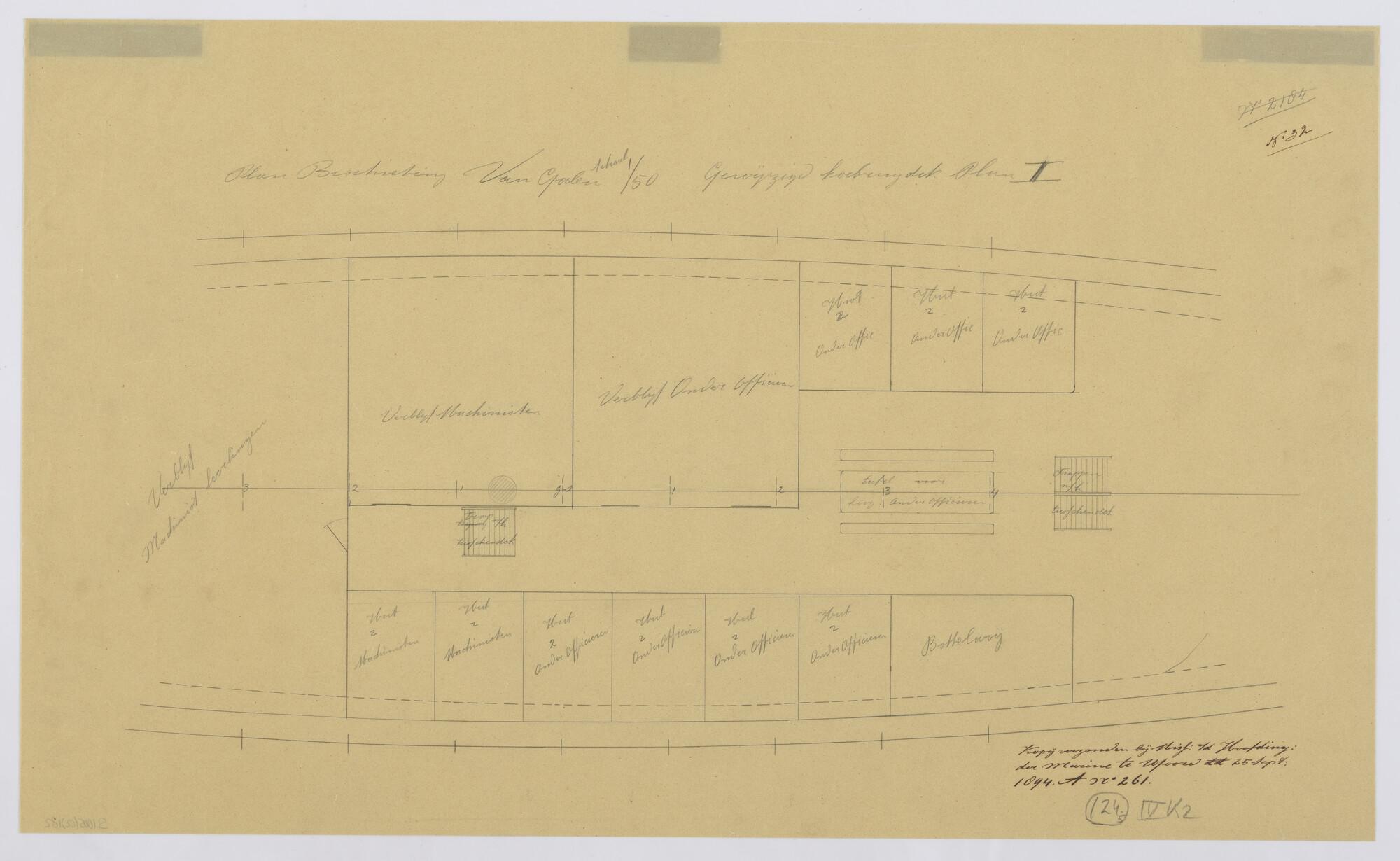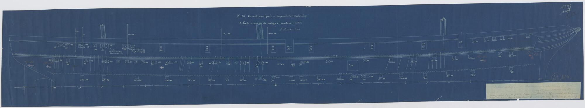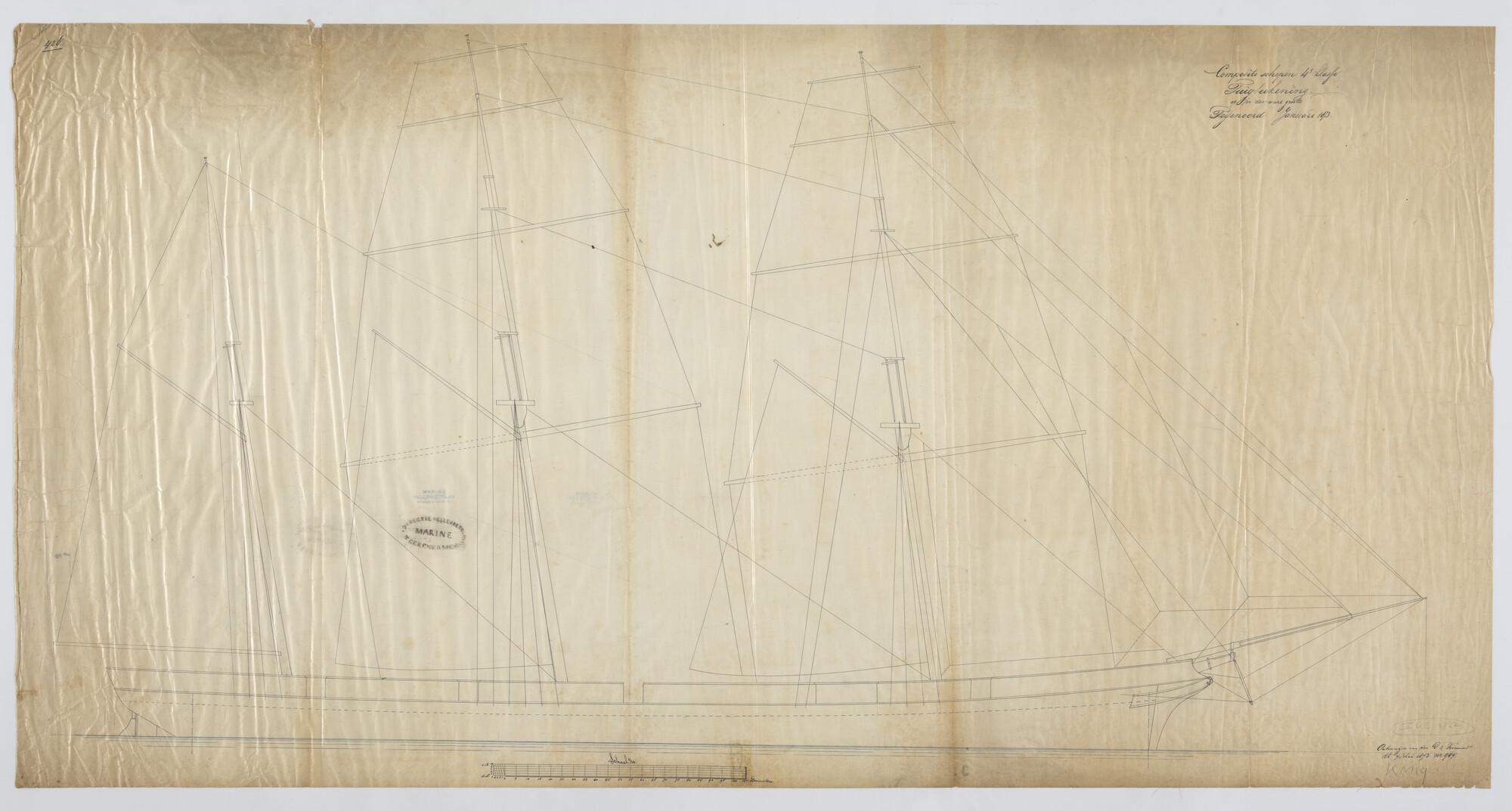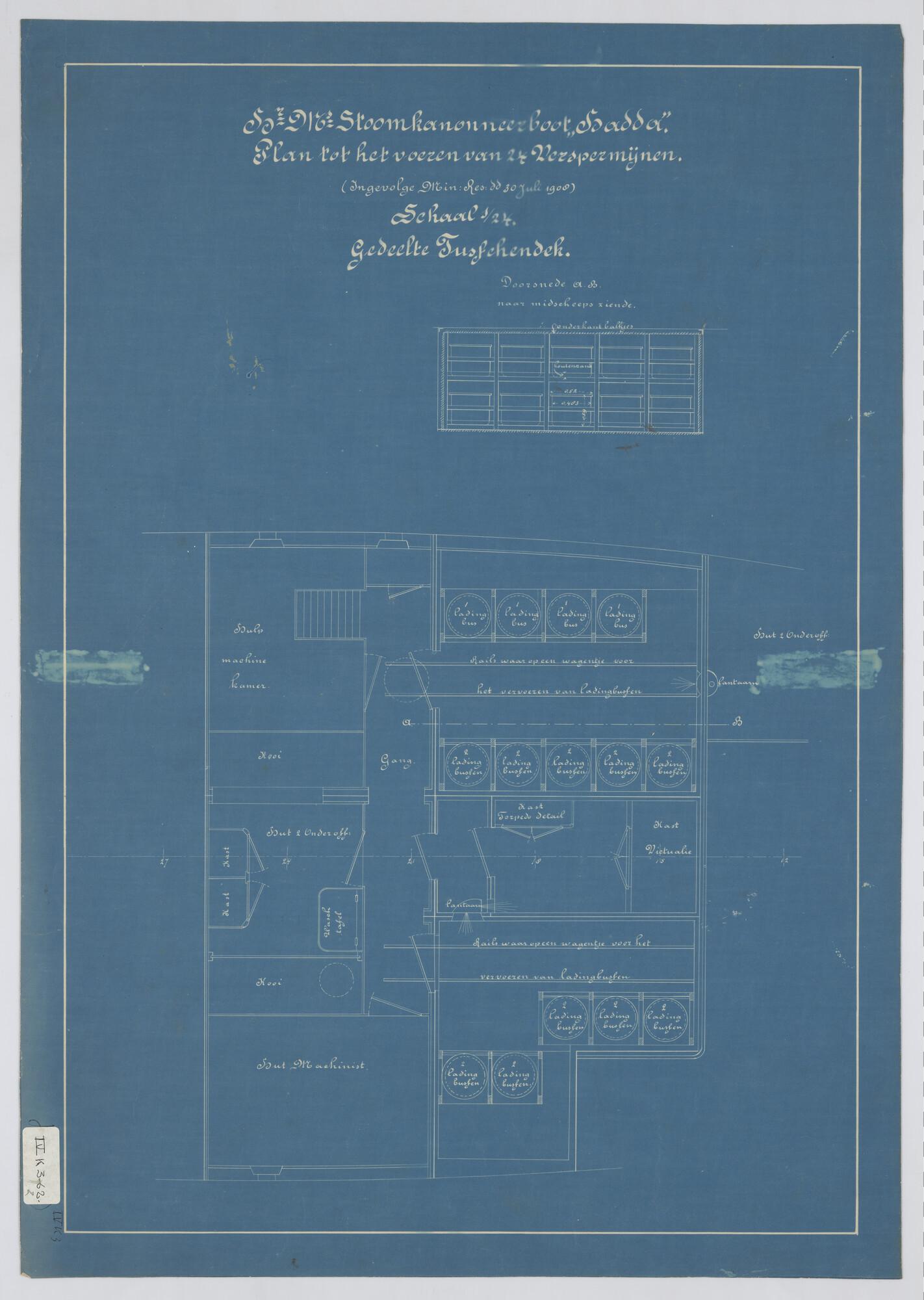 Langsdoorsnede, inwendige verdeling, grootspant van ...