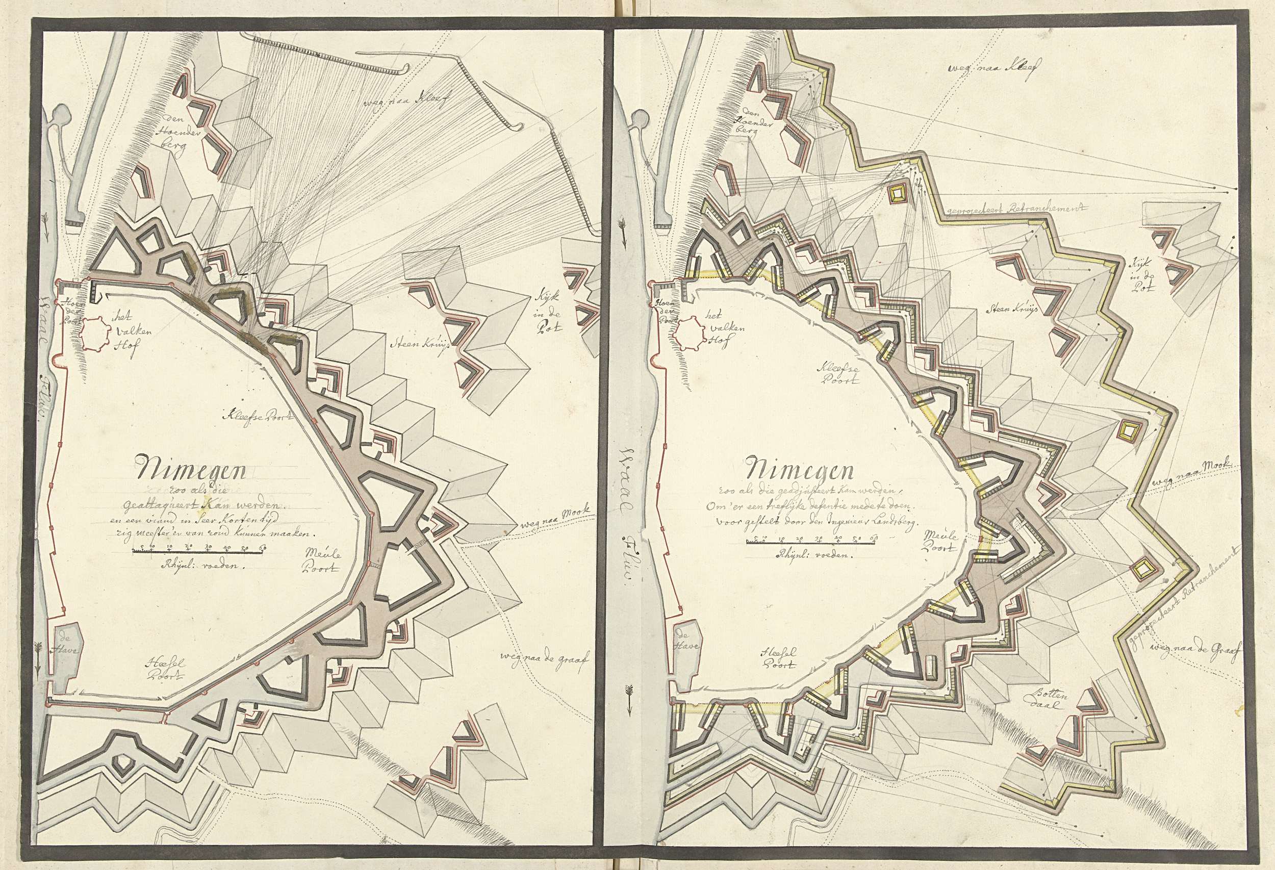 Twee plattegronden van Nijmegen, ca. 1701-1715