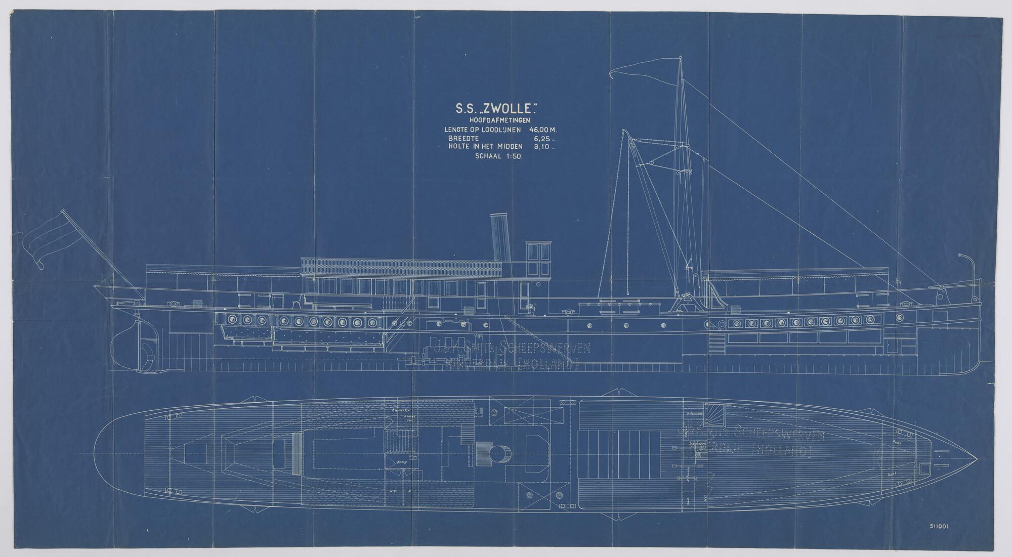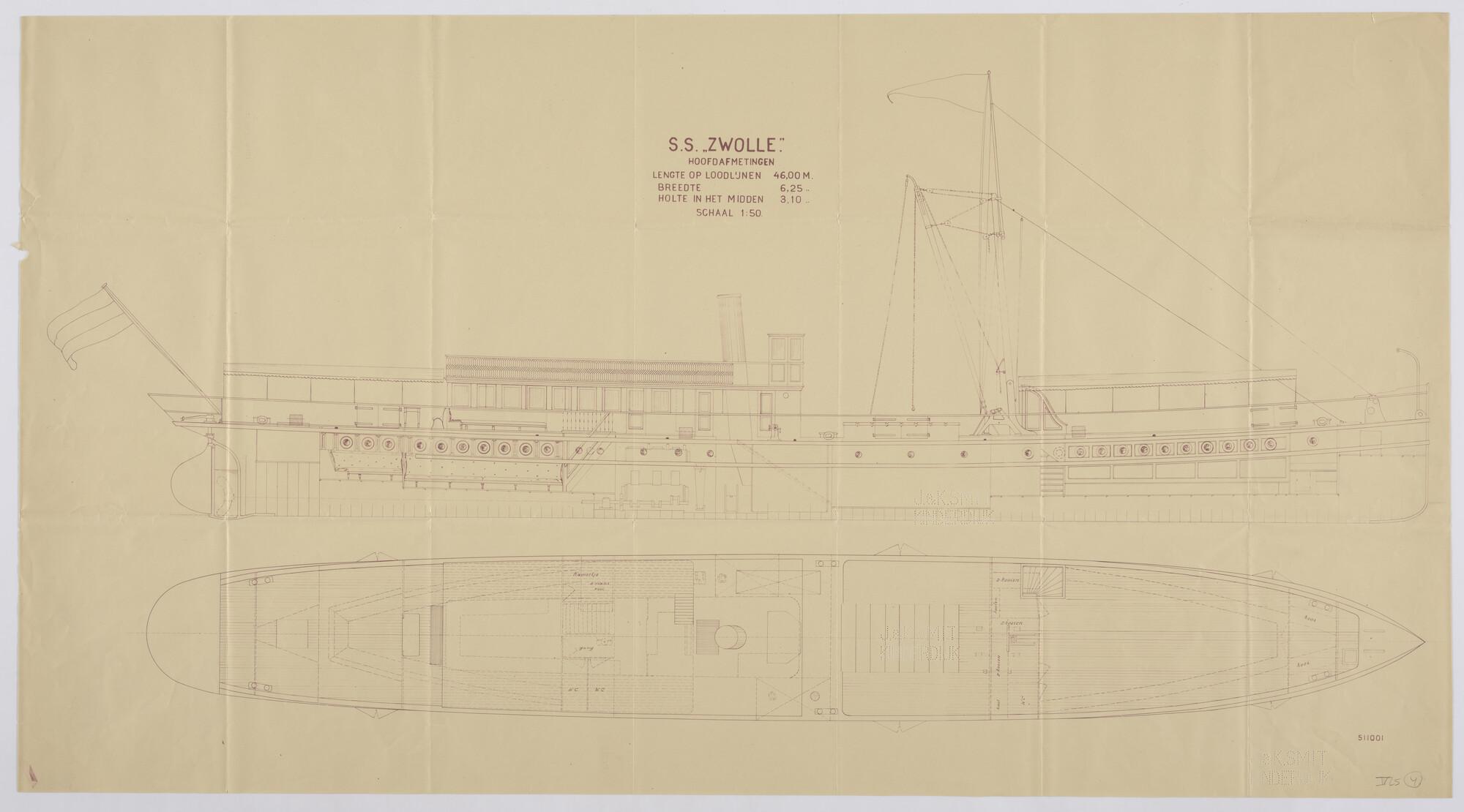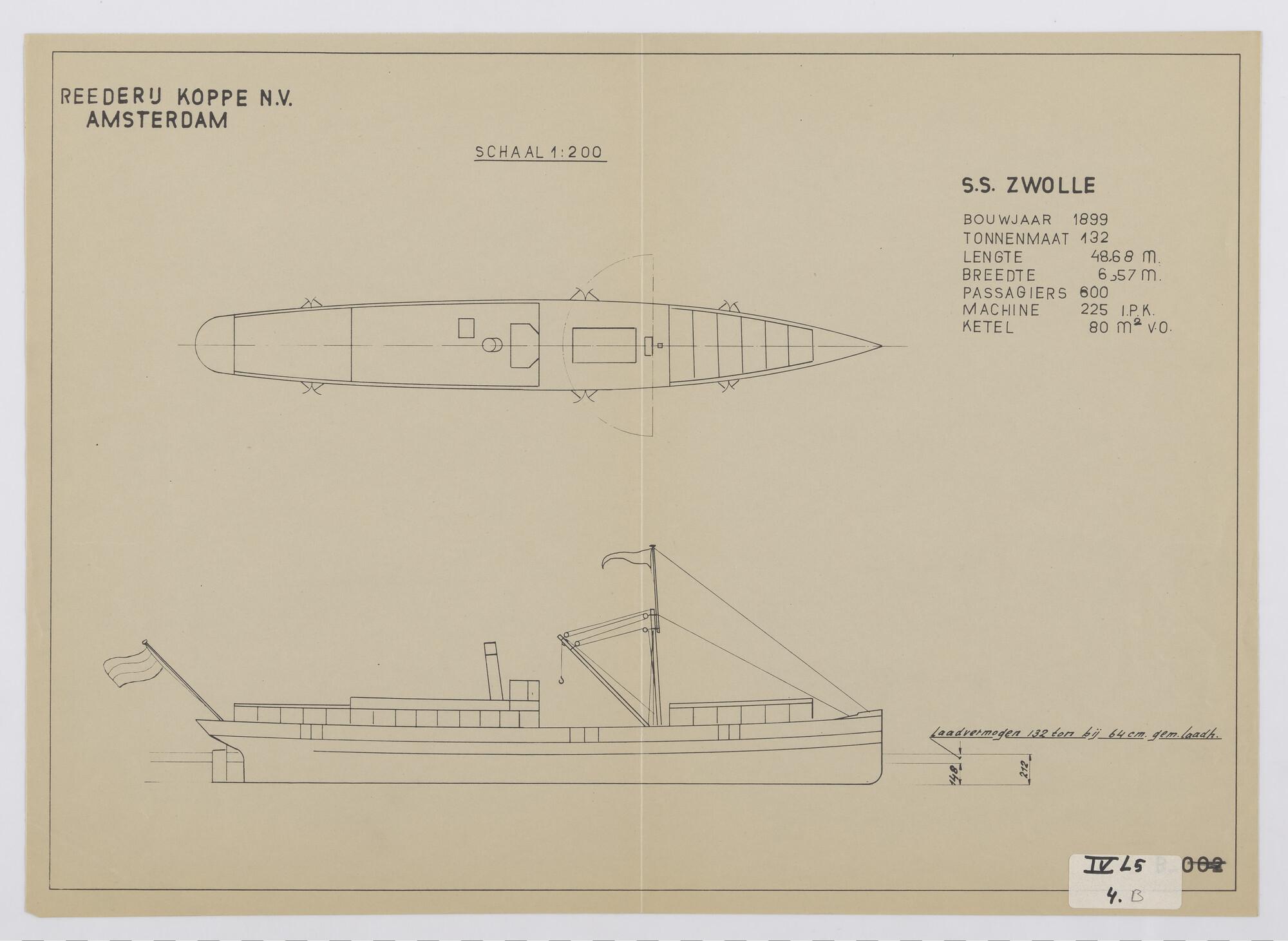 Het binnenvaartschip ss. 'Zwolle', 1899: zijaanzicht...