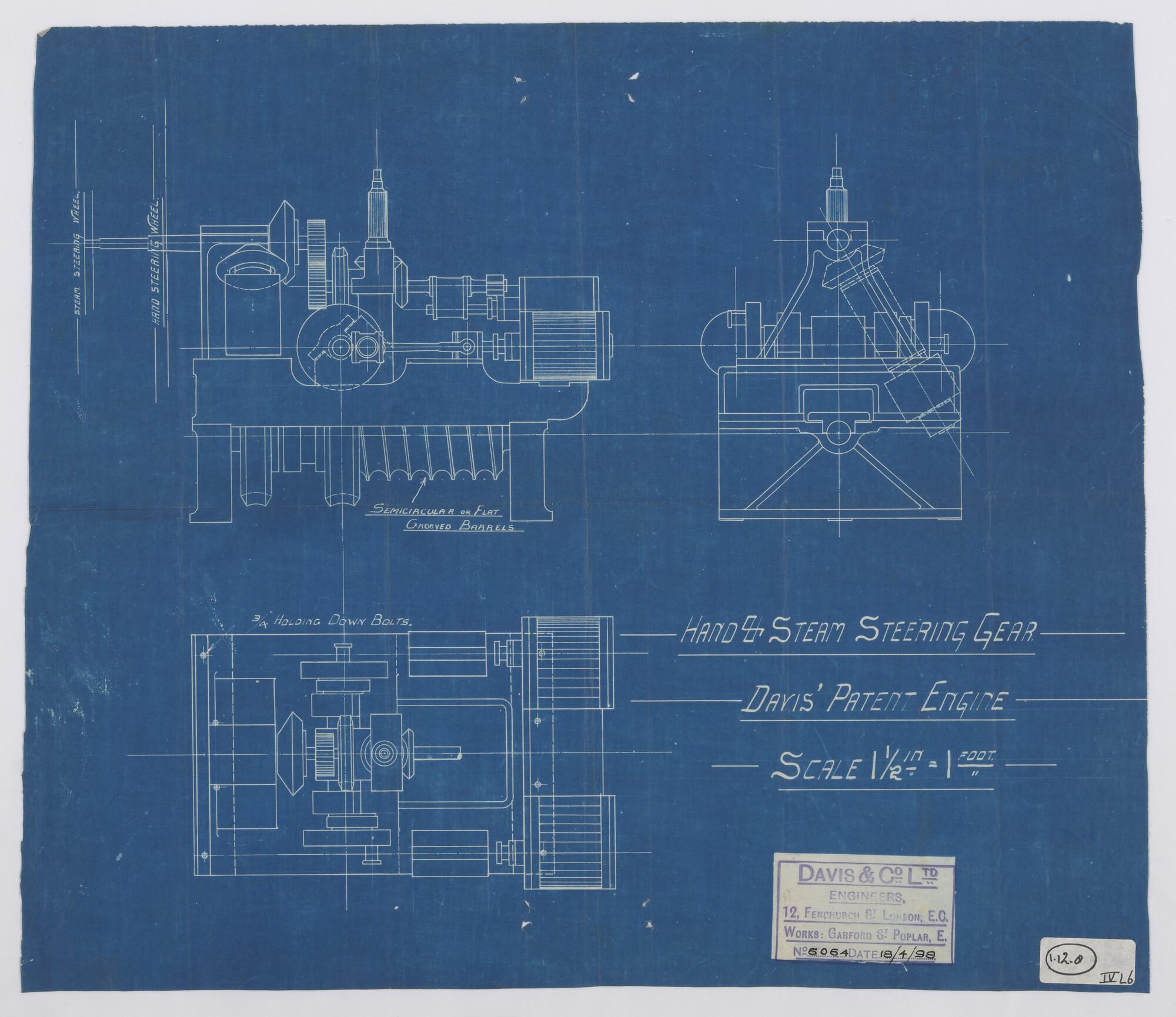 Hand and steam steering gear (Davis Patent Engine) v...