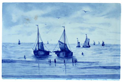 Groot formaat tegel van vissersschepen, varende boom...