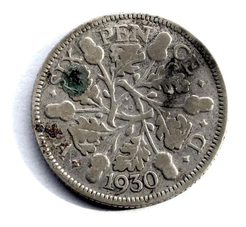 Zilveren Engelse betaalmunt, SIX PENCE, 1930