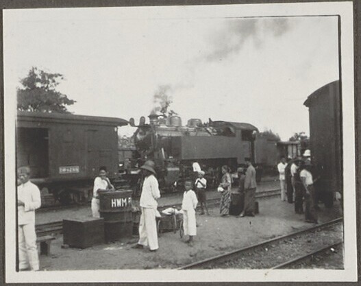 Passagiers bij een trein op station Praboemoelih