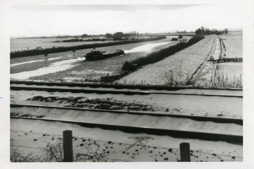 Foto in zwart-wit van het Prinses Margrietkanaal bij...