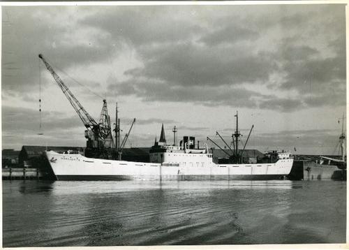 Foto in zwart-wit van een schip voor pootaardappelen...