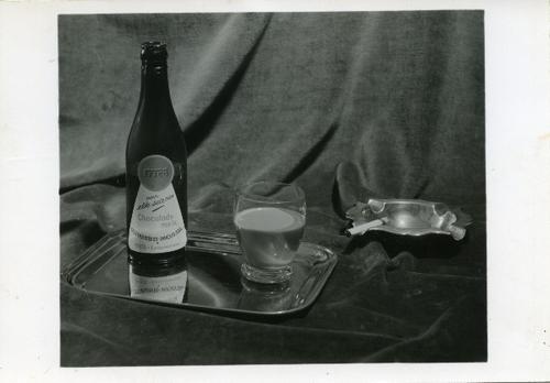 Foto in zwart-wit van Frico chocolademelk, 1953