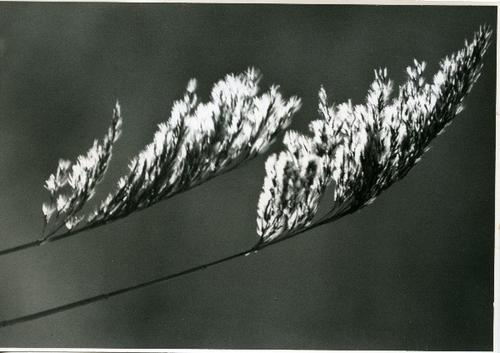 Foto in zwart-wit van rietpluimen door J.D. de Jong,...