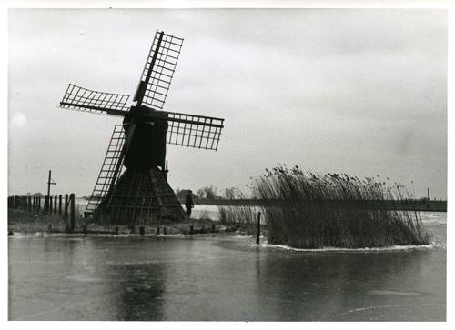 Foto in zwart-wit van een meer met rietkraag, 1965