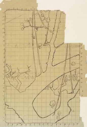 Overtrektekening van De residentie met de pruimenbom...