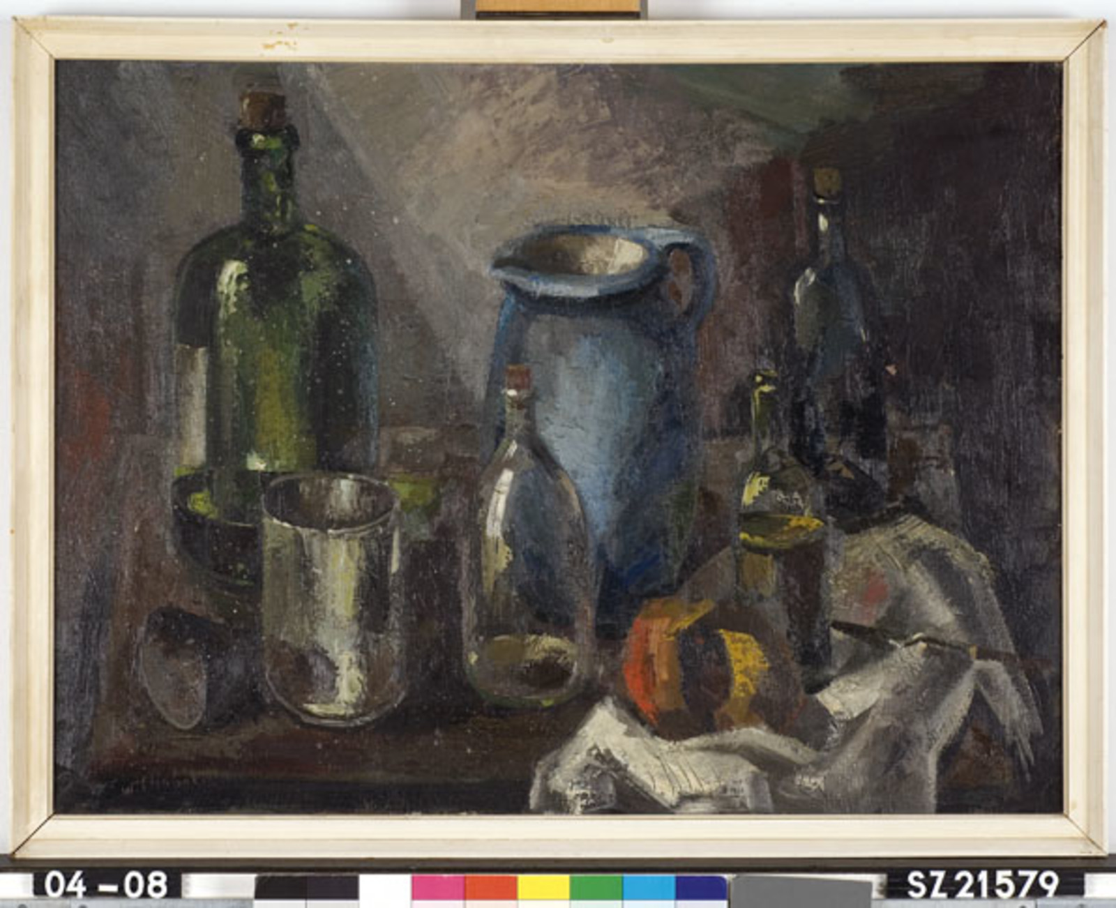 Stilleven met kan en fruit