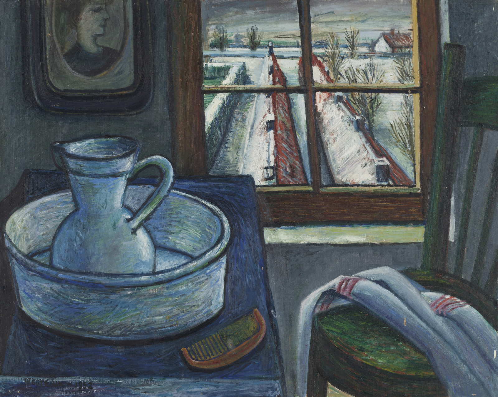 Zolderhoek met raamuitzicht in winter