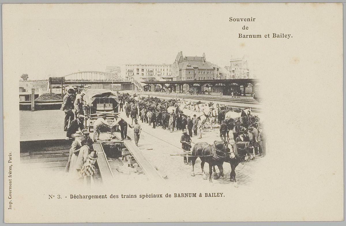 Déchargement des trains spéciaux de Barnum and Bailey