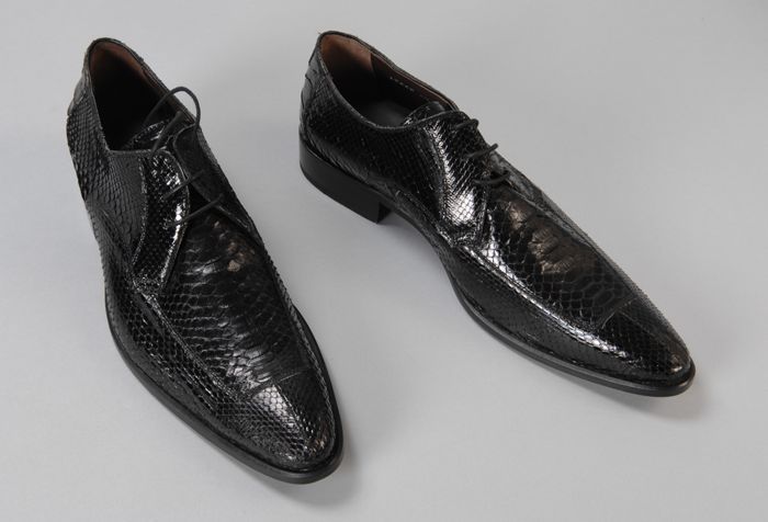 Paar herenschoenen, zwartbruin slangenleer, "Corbeau"