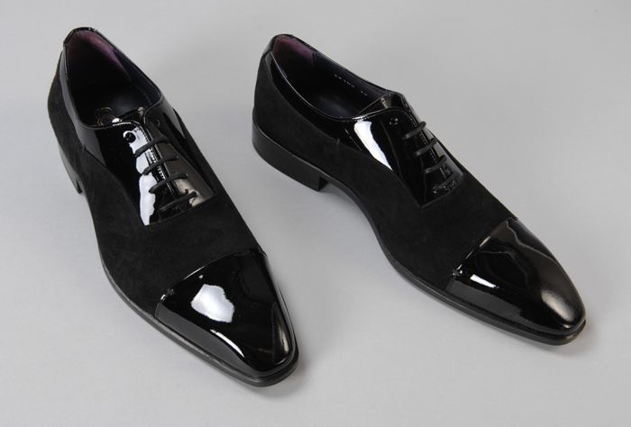 Paar herenschoenen, zwarte suède met lak, "Corbeau"