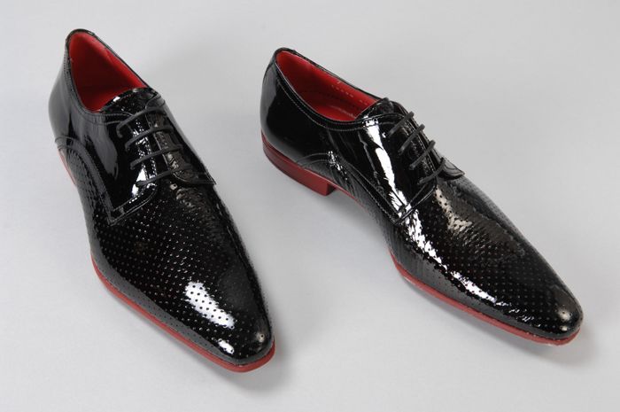 Paar herenschoenen, zwarte lak met perforaties, "Cor...