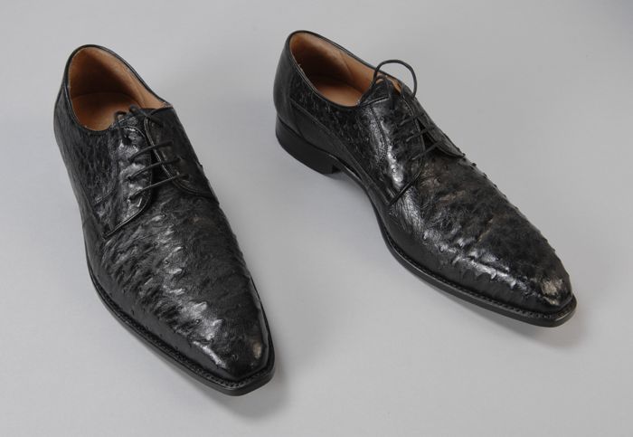 Paar herenschoenen, zwart struisvogelleer, "Corbeau"