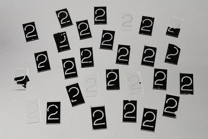 Cijfer "1", zilver op glas op zwarte ondergrond, Cor...