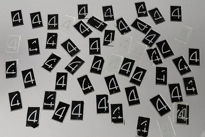 Cijfer "4", zilver op glas op zwarte of doorzichtige...