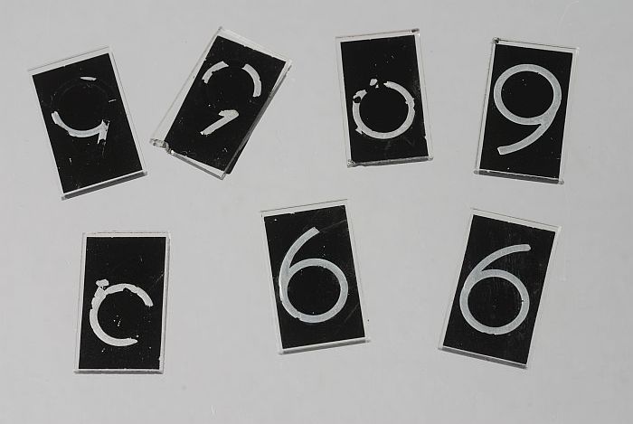 Cijfer "6" of "9", zilver op glas op zwarte of doorz...